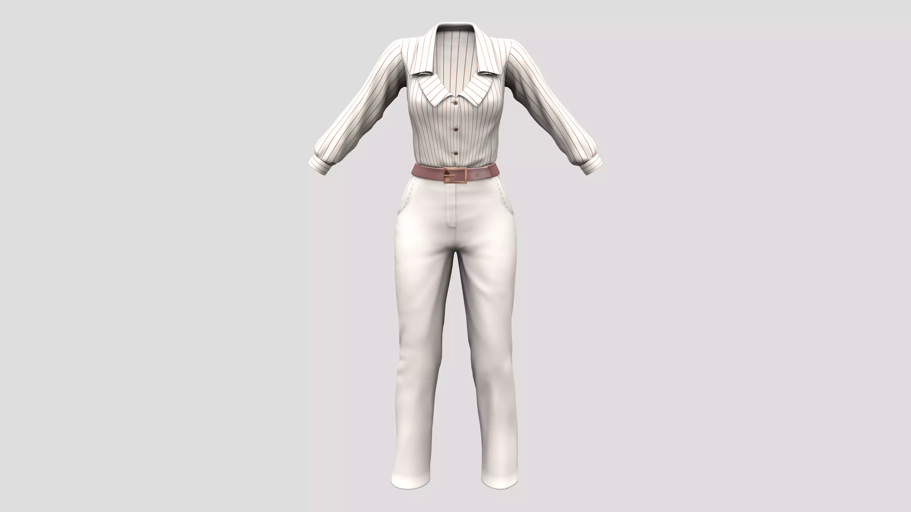 Beige Pants Striped Shirt Formal Outfit Low-poly 3D model