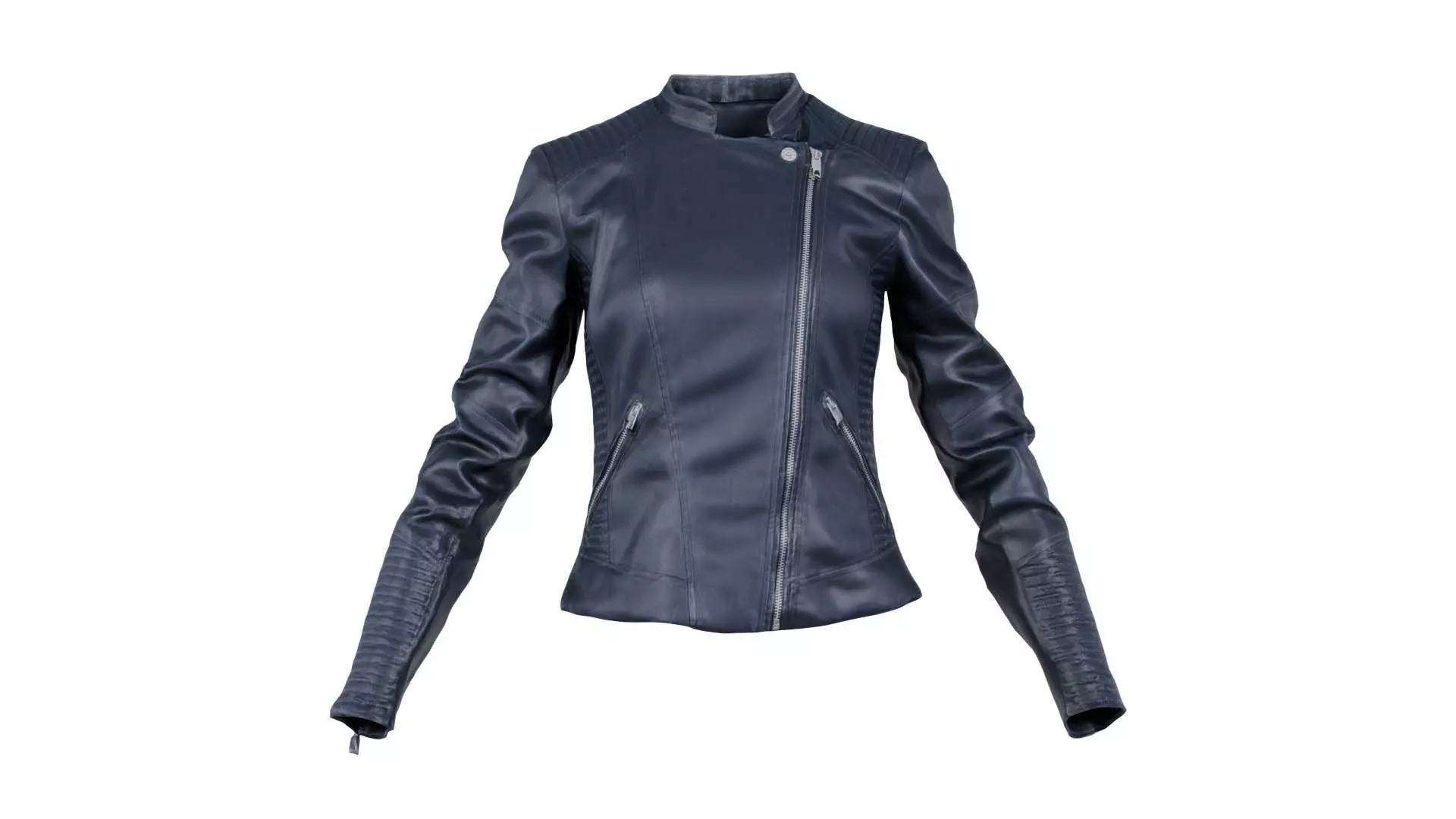 Polygonal Miniatures presents biker jacket black closed, a model from our 3D scanned catalogue. The model, a women's leather jacket with zippers on the sleeves, is obtained by photogrammetry, and scanned using SLR camera's.Processing takes place in Zbrush and Photoshop and the resulting 3D model has unwrapped, non overlapping UV's, and a texture and normal map. Before publishing, we make sure the model has real world scale (meters), correct shader setup and is centered at the origin.Apart from the various file formats, we also offer a Blender file with material and textures set-up, ready for export and rendering. More info can be found below: