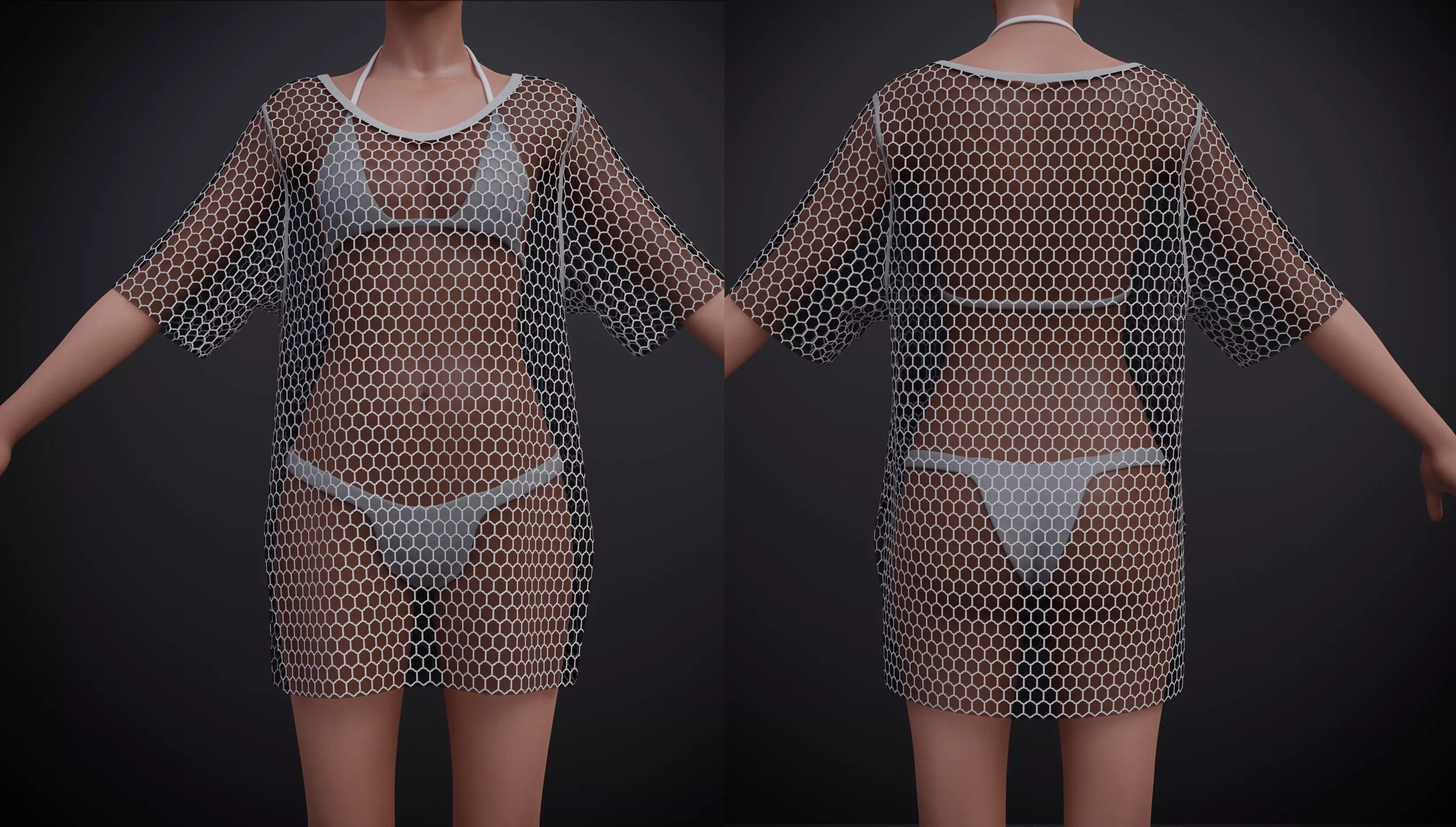 female swimsuit outfit - set and crotchet cover top Low-poly 3D model