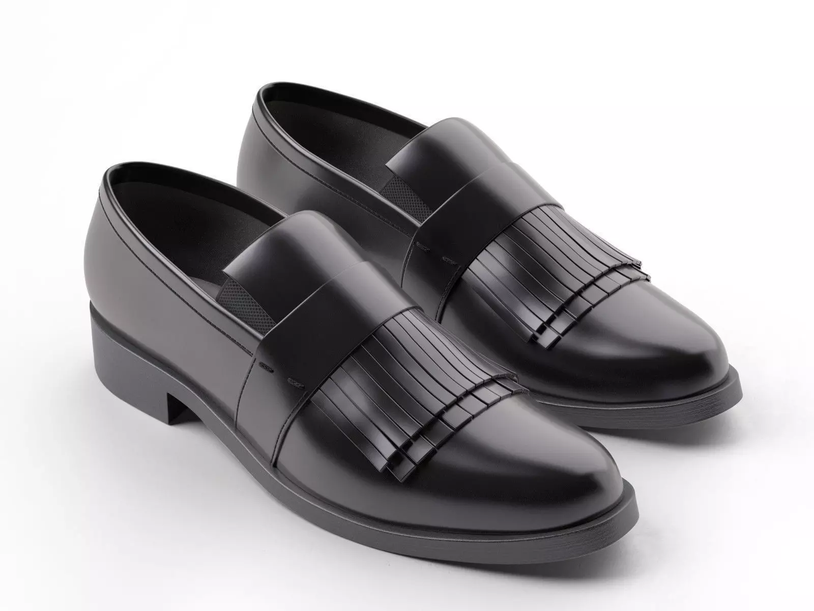 This 3d model Black Fringed Penny Loafers has a fully textured, detailed design that allows for close-up renders. Every model has been checked with the appropriate software.