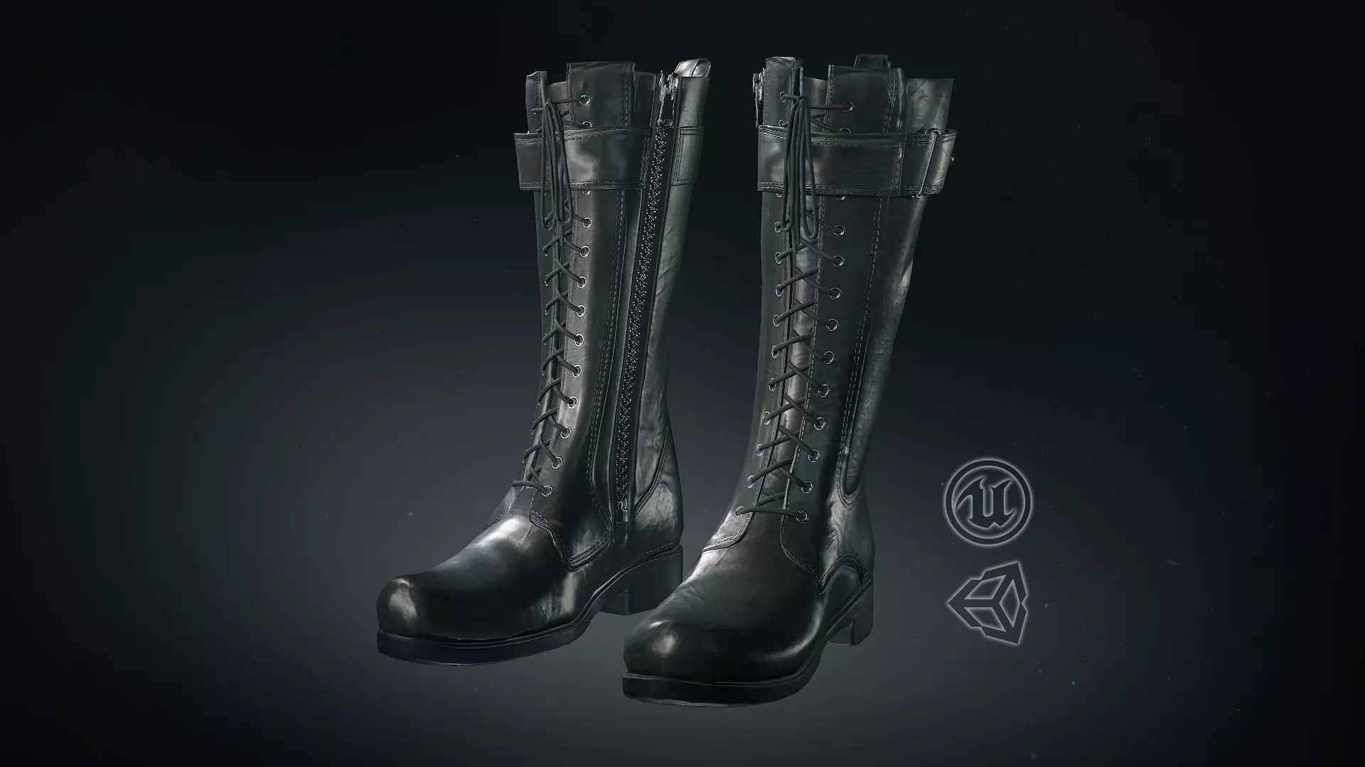 Black Leather Boots 1 lowpoly/PBR