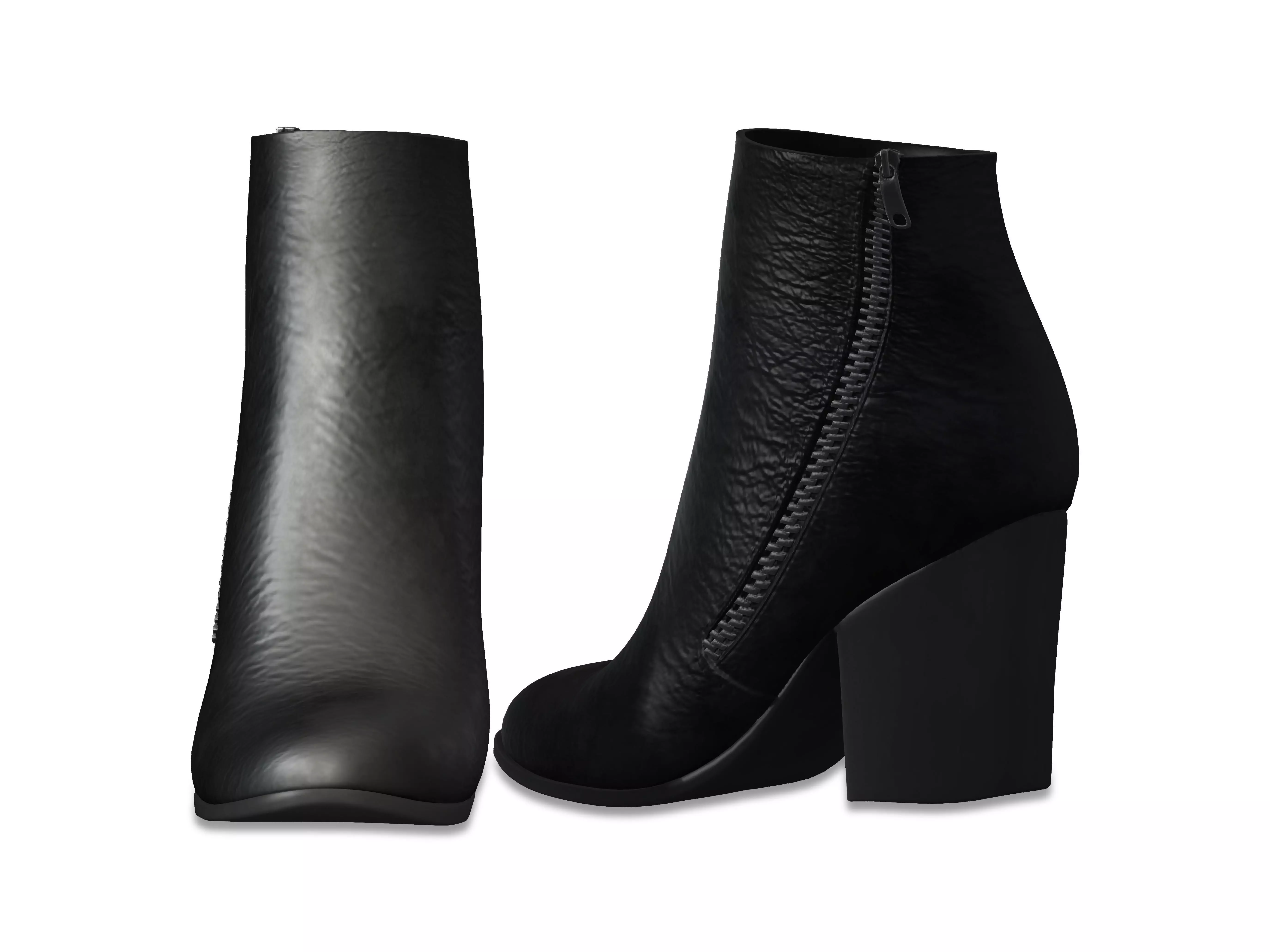 Black Leather Side Zipped Ankle Boots Low-poly 3D model