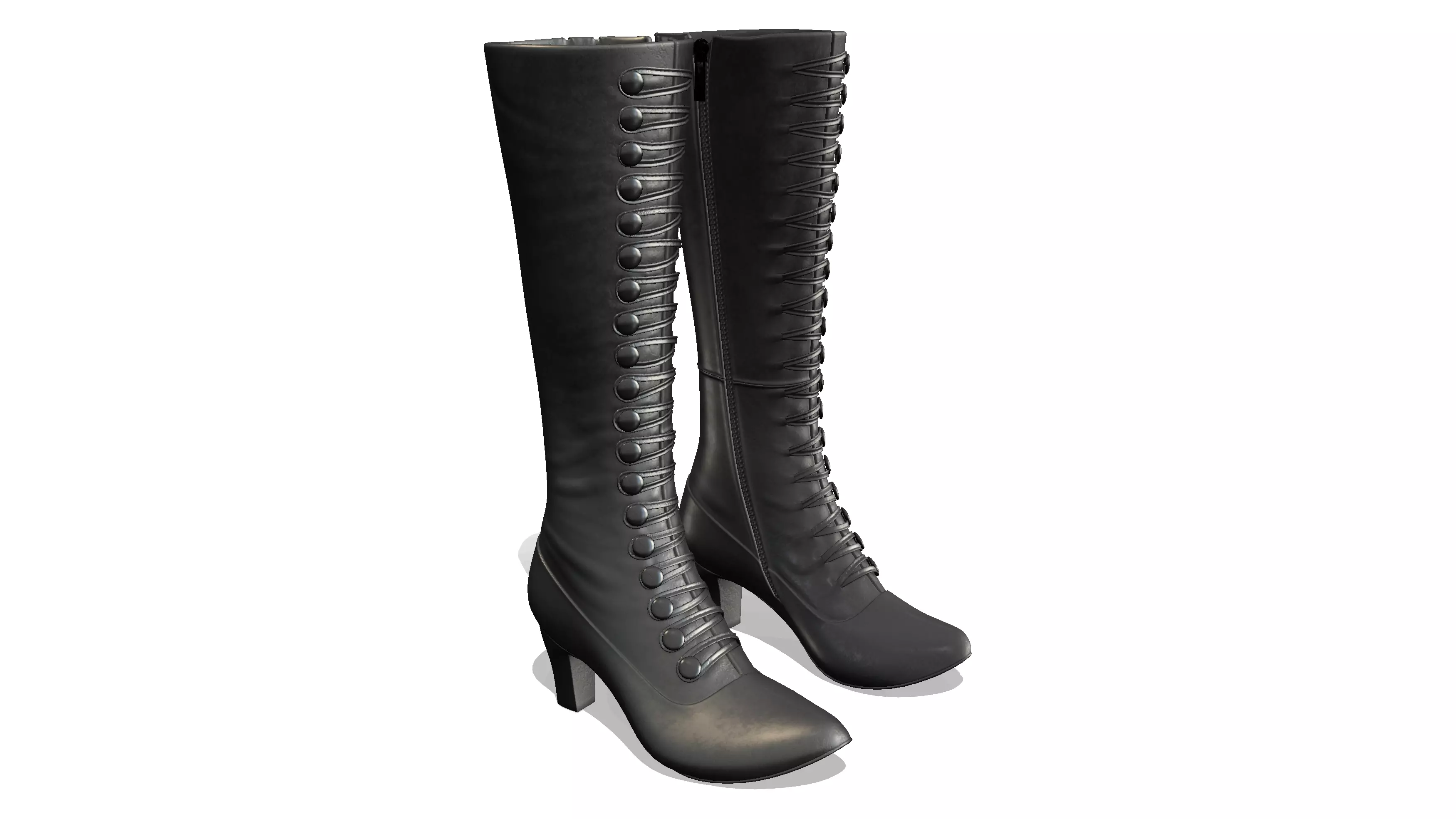 Black Mid Heels Buttoned Up Calf Boots Low-poly 3D model