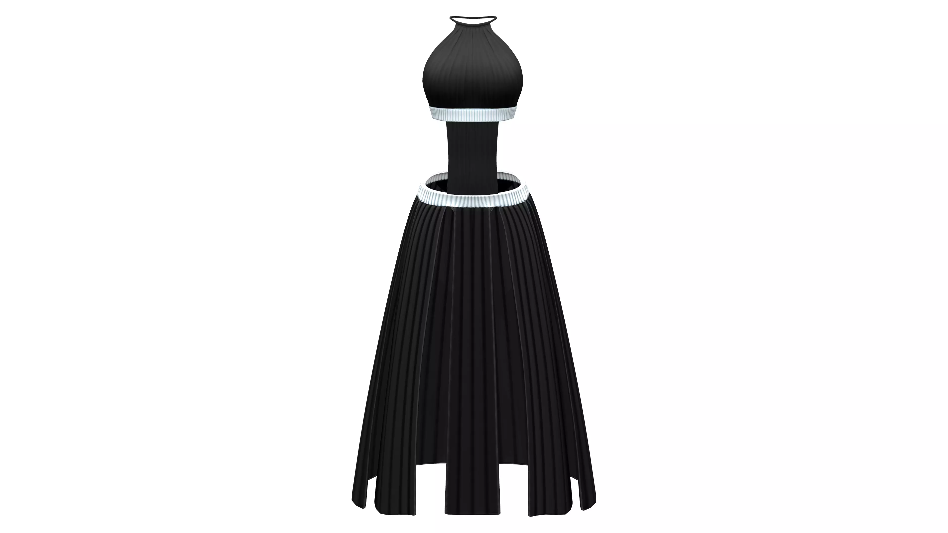 Black Midriff Top Long Strips Skirt Outfit Low-poly 3D model