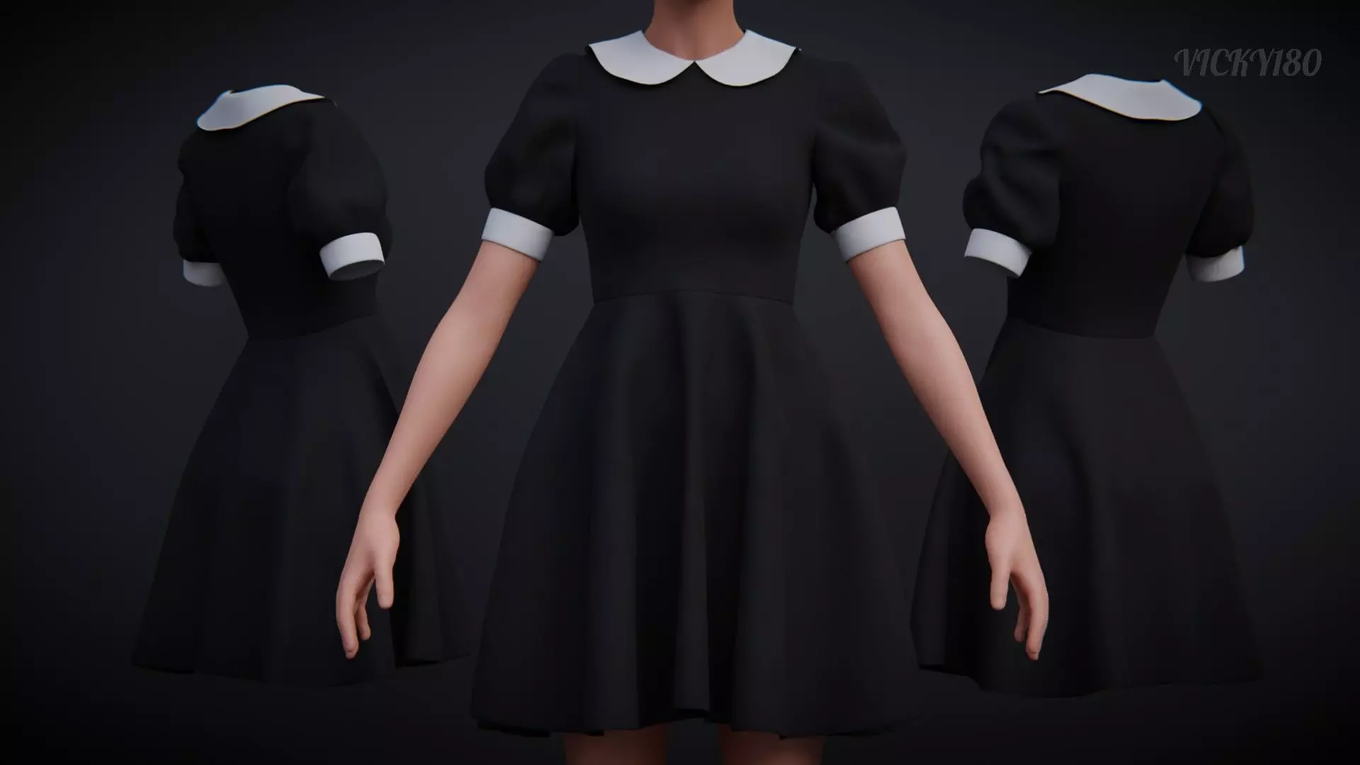 Black Peter pan collar dress 3D model