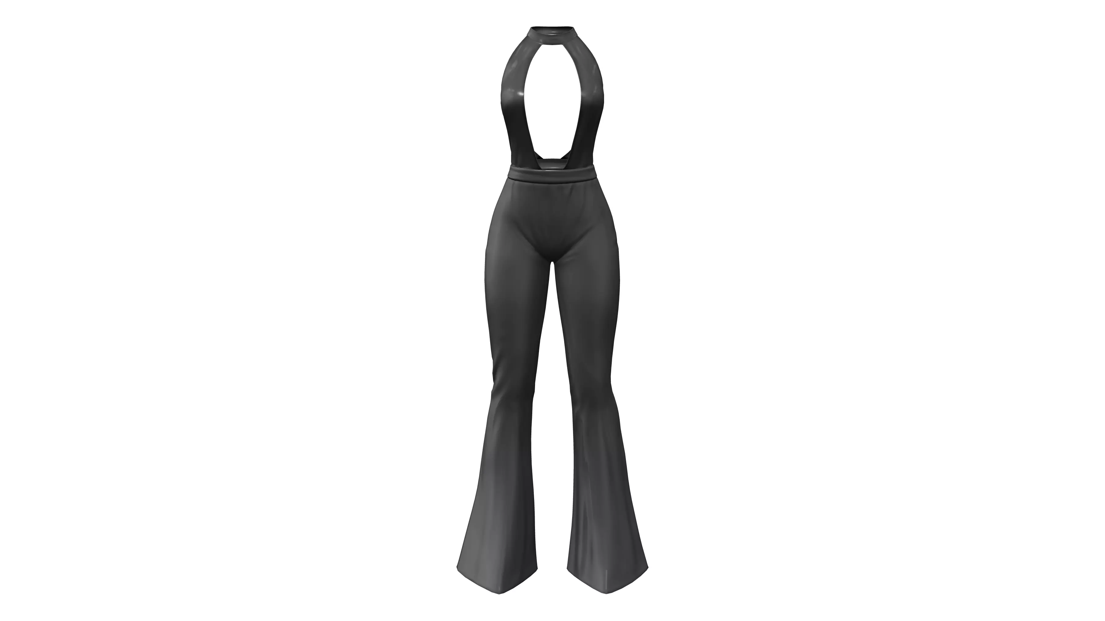 Black Satin Boot Cut One-Piece Suit Low-poly 3D model