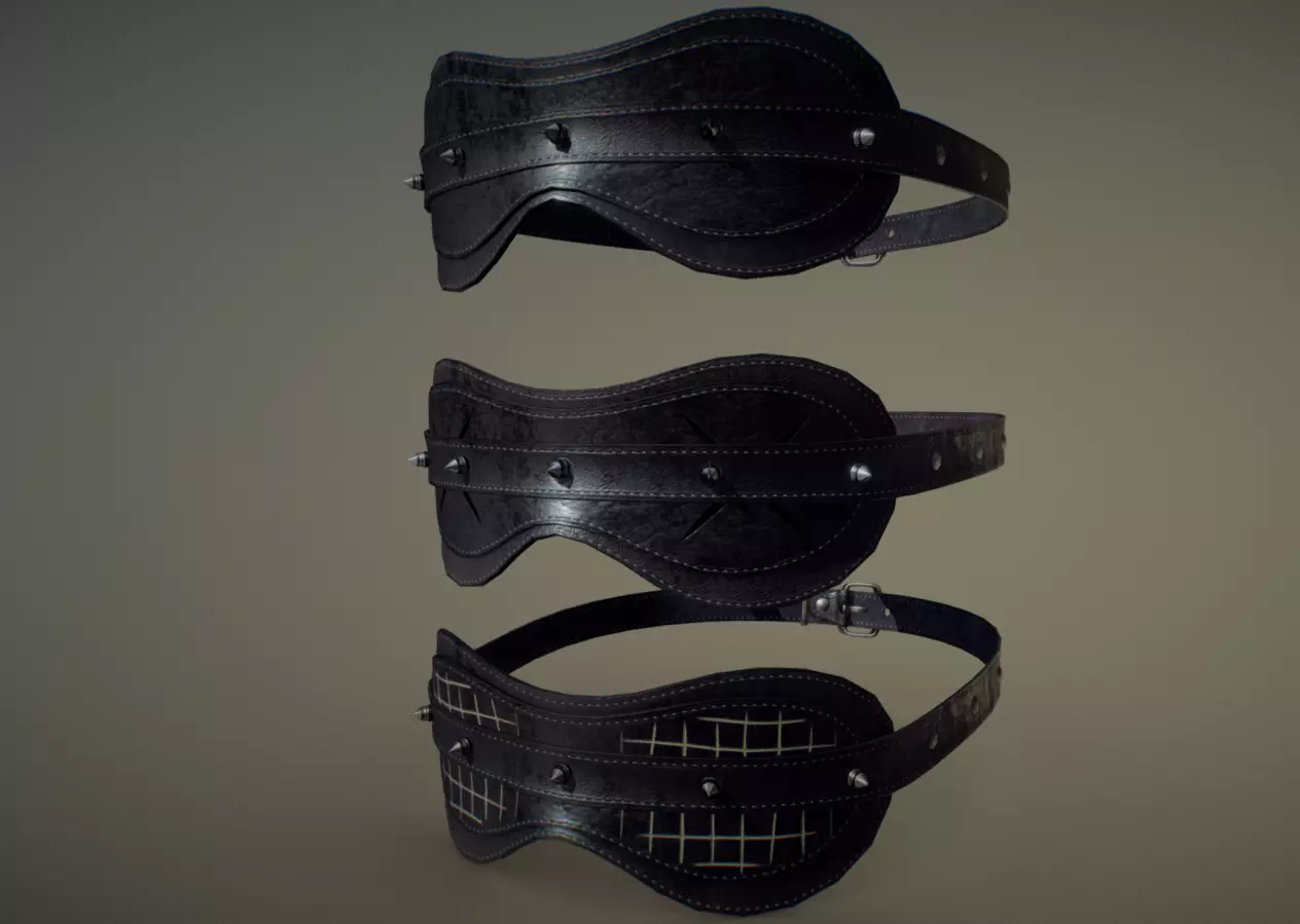 Set of 3 Black leather BDSM eye bondage. 4k textures (each). UVed. Clean Quad topology. Due to clean quad topology it is easy to increese or reduce polygons as you need. You’re able to decreese polygon count by 2 by removing inner parts of the mesh if needed.