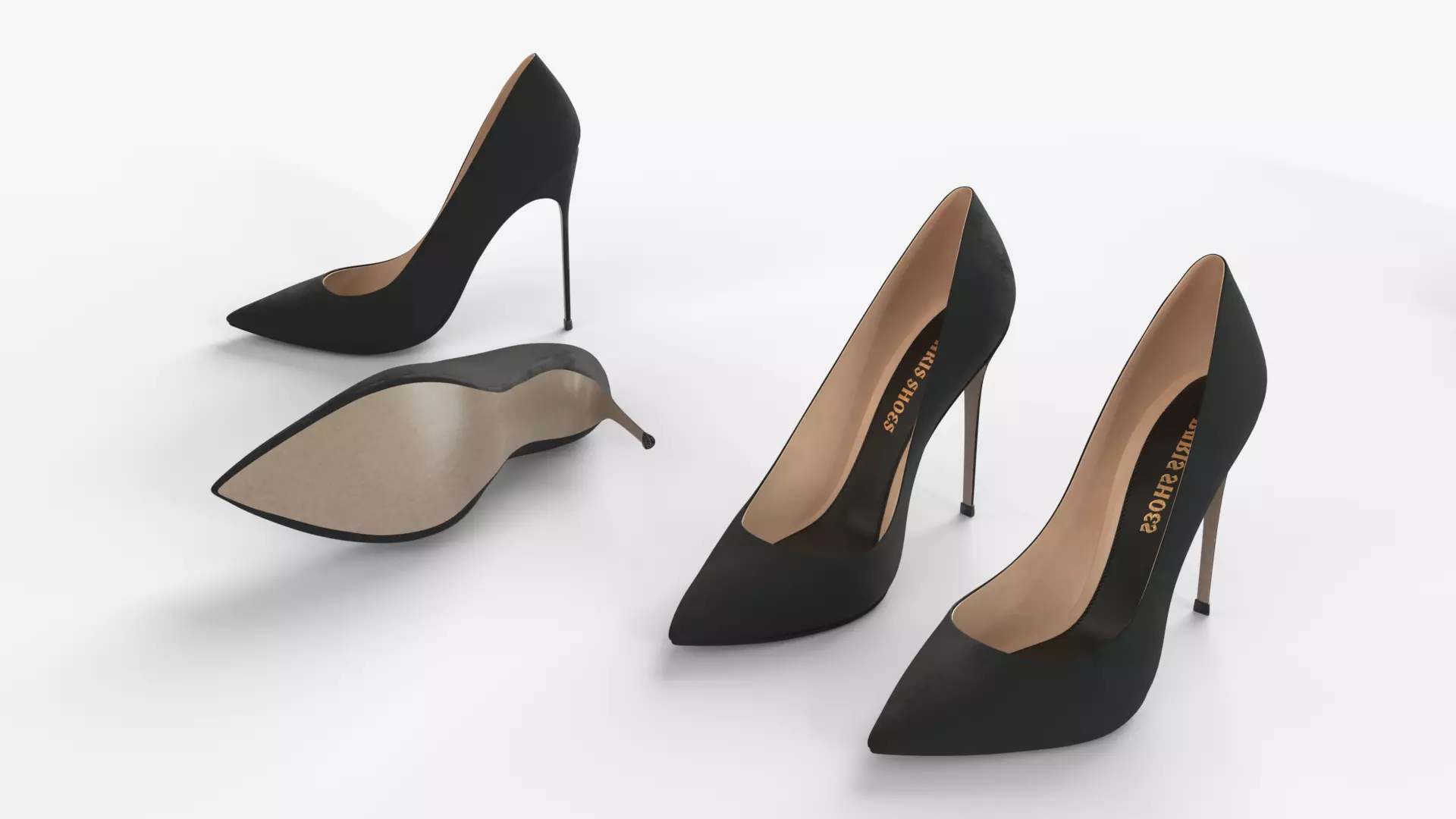 ** Black Suede leather Women high heels Shoes the model features clean geometry (no N-gons) ,unwrapped UV maps,high-resolution 2K and 4K PBR textures.**
