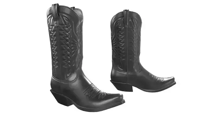 Black Western Boots 3D model