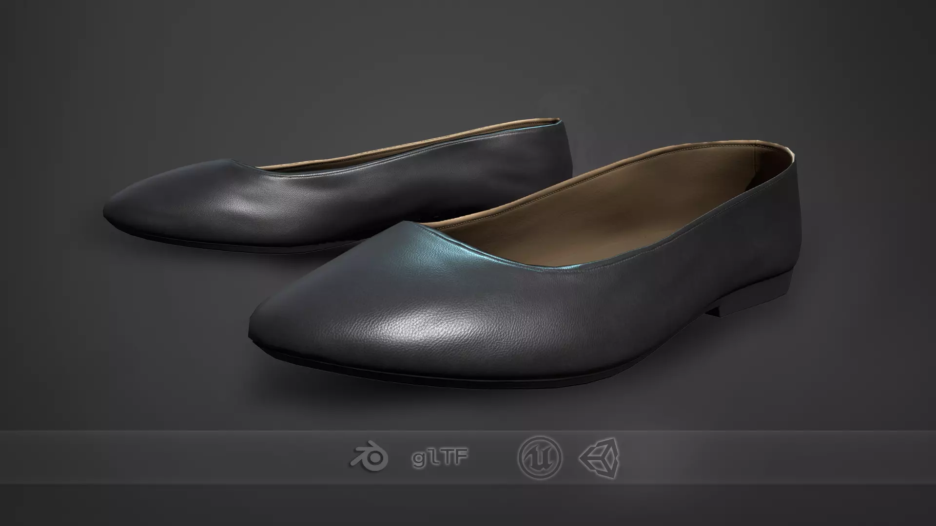• This is Black Woman Flat Pumps Shoes Comes with Specular, Metalness PBR texture.