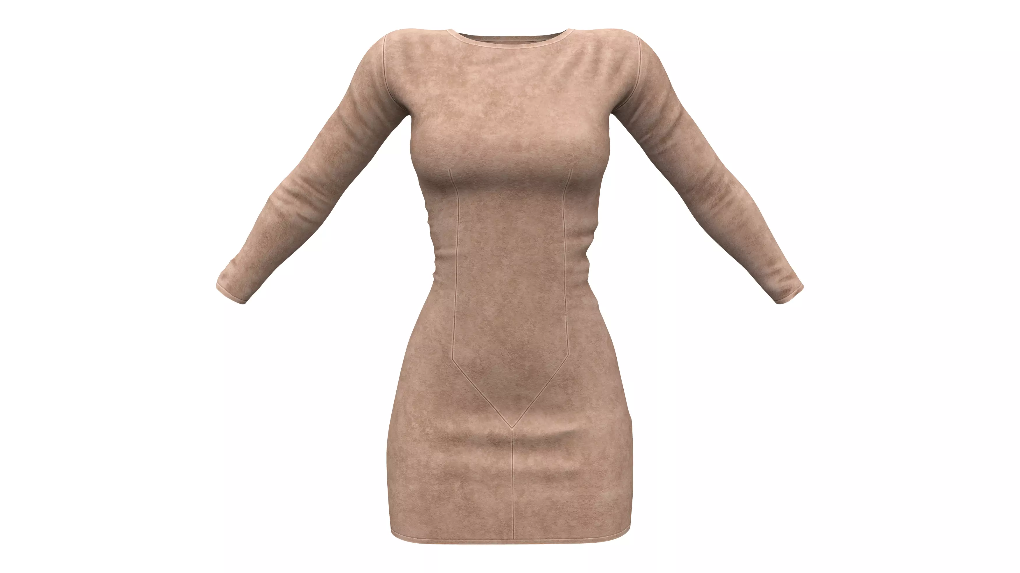 Boatneck Long Sleeves Mini Suede Dress Low-poly 3D model