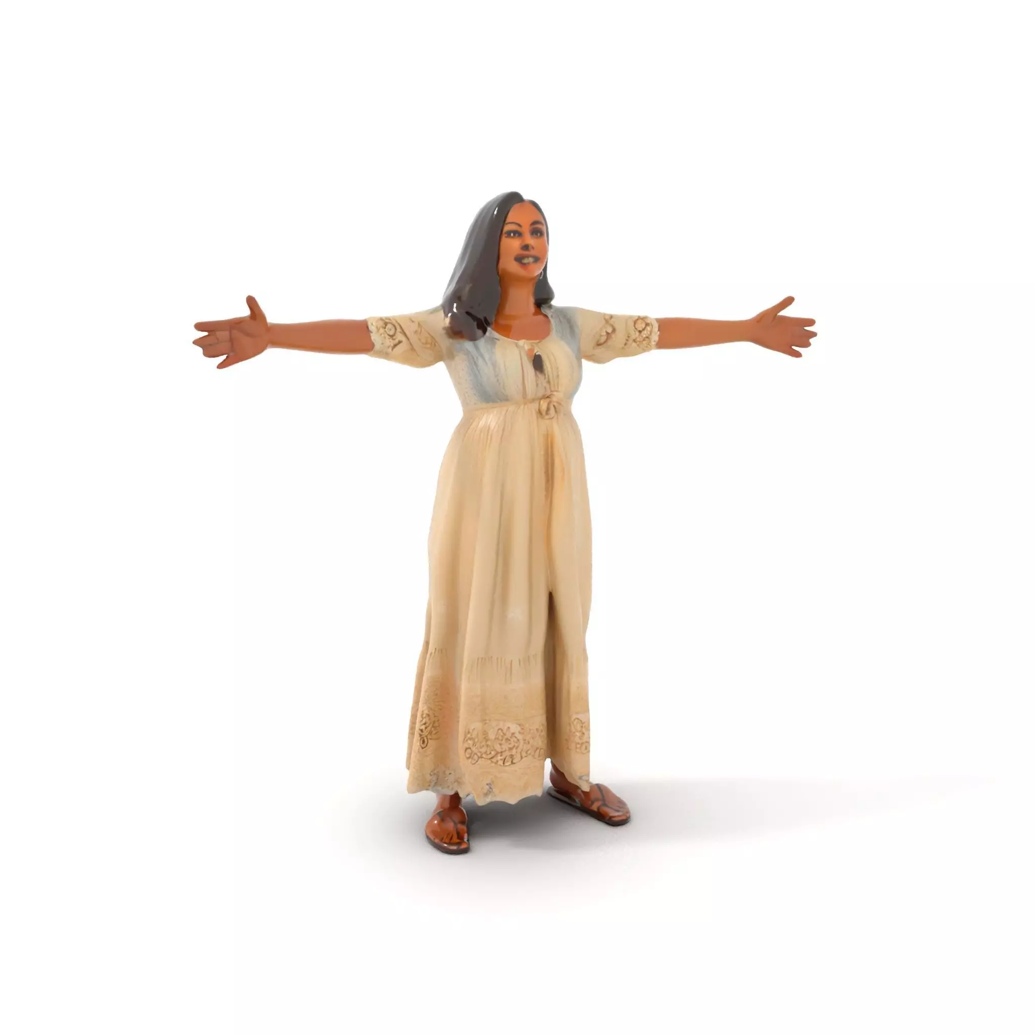 The Boho Maternity Dress model pack features a flowing, intricately designed garment perfect for simulation in fashion renders or character design. Each model has 3 levels of detail: low-poly (1000 triangles for mobile), middle-poly (10,000 triangles for environment), and high-poly (100,000 triangles), which allows for the use of this model in production rendering (such as 3ds Max, Maya, Cinema4D, Blender, Vray/Corona/Cycles, and all others), game engines (Unity and Unreal compatible), and interactive presentations, providing a choice of detail based on the LOD System principle. This versatile model is perfect for virtual fashion shows, character animation, or retail presentations. The model's textures are PBR, Diffuse, NormalMap, and reflection/roughness/metallic, which are suitable for any modern rendering engine. All models are accurately unwrapped and have no overlapping UV. All textures are 4096*4096 in size. Please like and leave a comment for the model if you like it.