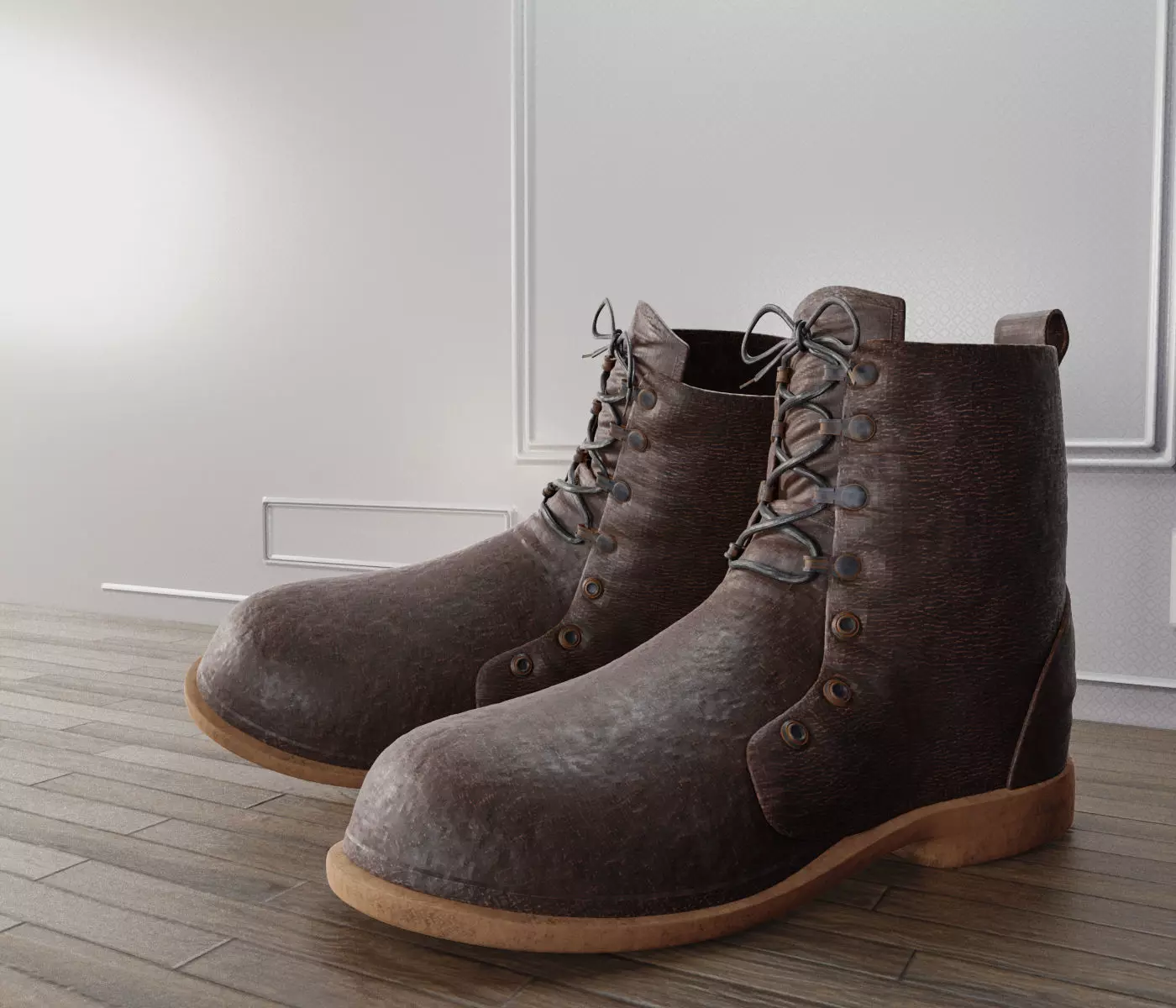 I created this model in ZBrush .The boot has 28 subtools: Boot, Back, Tongue, Eyelets, Laces.The boot