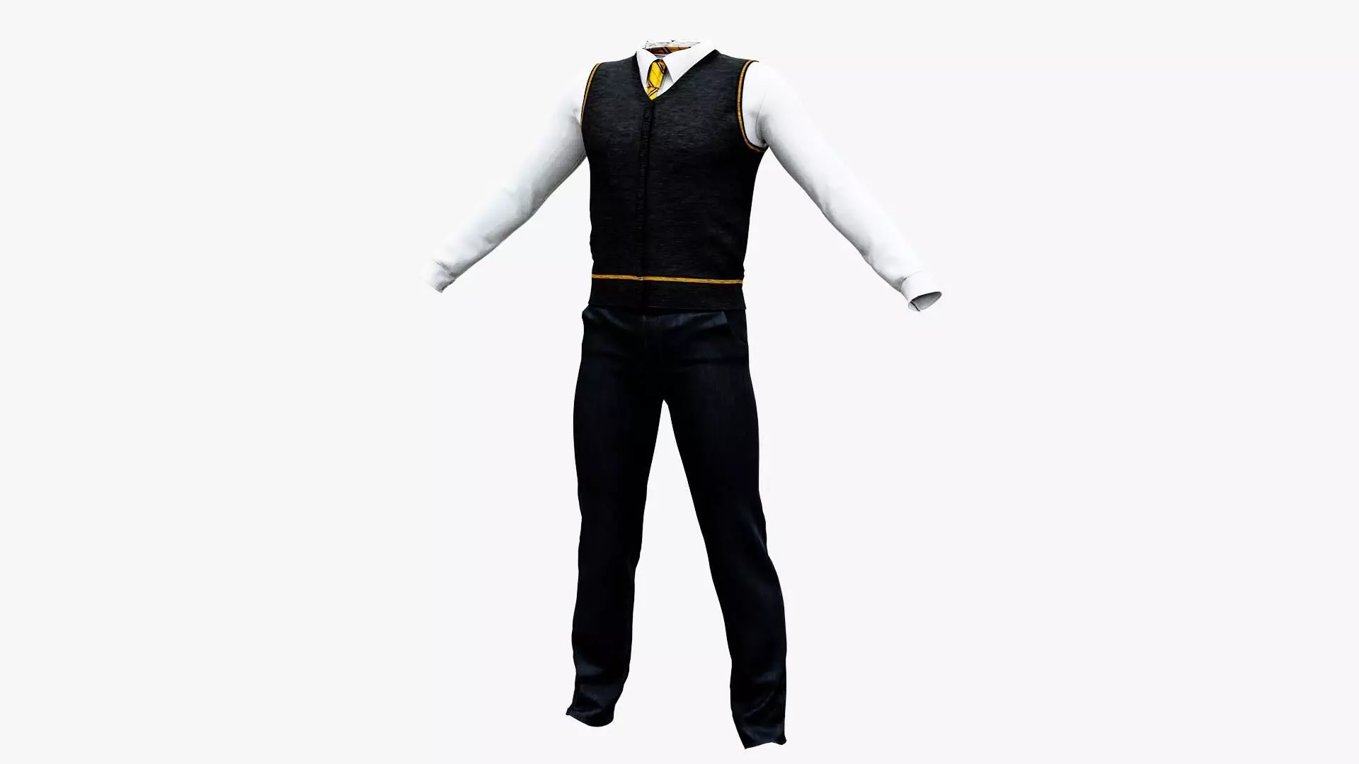 Realistic 3D Model of Boys Hogwarts Uniform Harry Potter Hufflepuff Created by Paradoox Studio.
