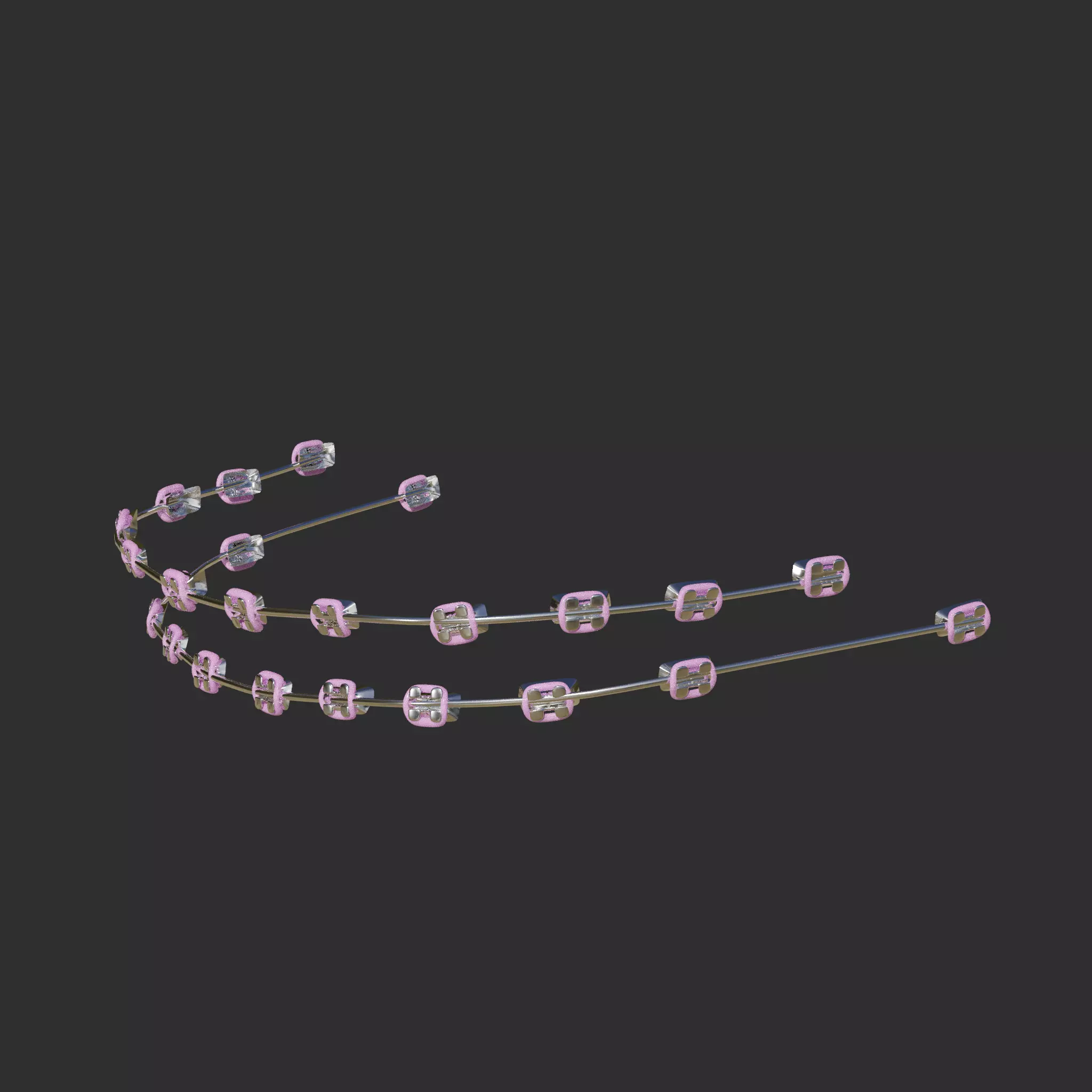 Polycount:=>>1 subdiv: 13920 faces, 14616 verts without sub-div : 3480faces, 3792verts Blend FILEThe .blend file provides Procedural Textures, preweighted(DEF_Head, DEF_Jaw) for an Humanoid Armature (*NOT Included Armature)Each Braket has its own group weigth an his own controller. This allow to Easy set up the braces on an 3d character(*NOT Included 3d character)1 Procedural Material for the entire braces (see procedural example preview) (*Material INCLUDED)1 Set of Textures (Pink Color) ready to use as it was an PBR texture (NOT procedural) Works on EEVEE or CYCLES Render engineSubdivided 1 time