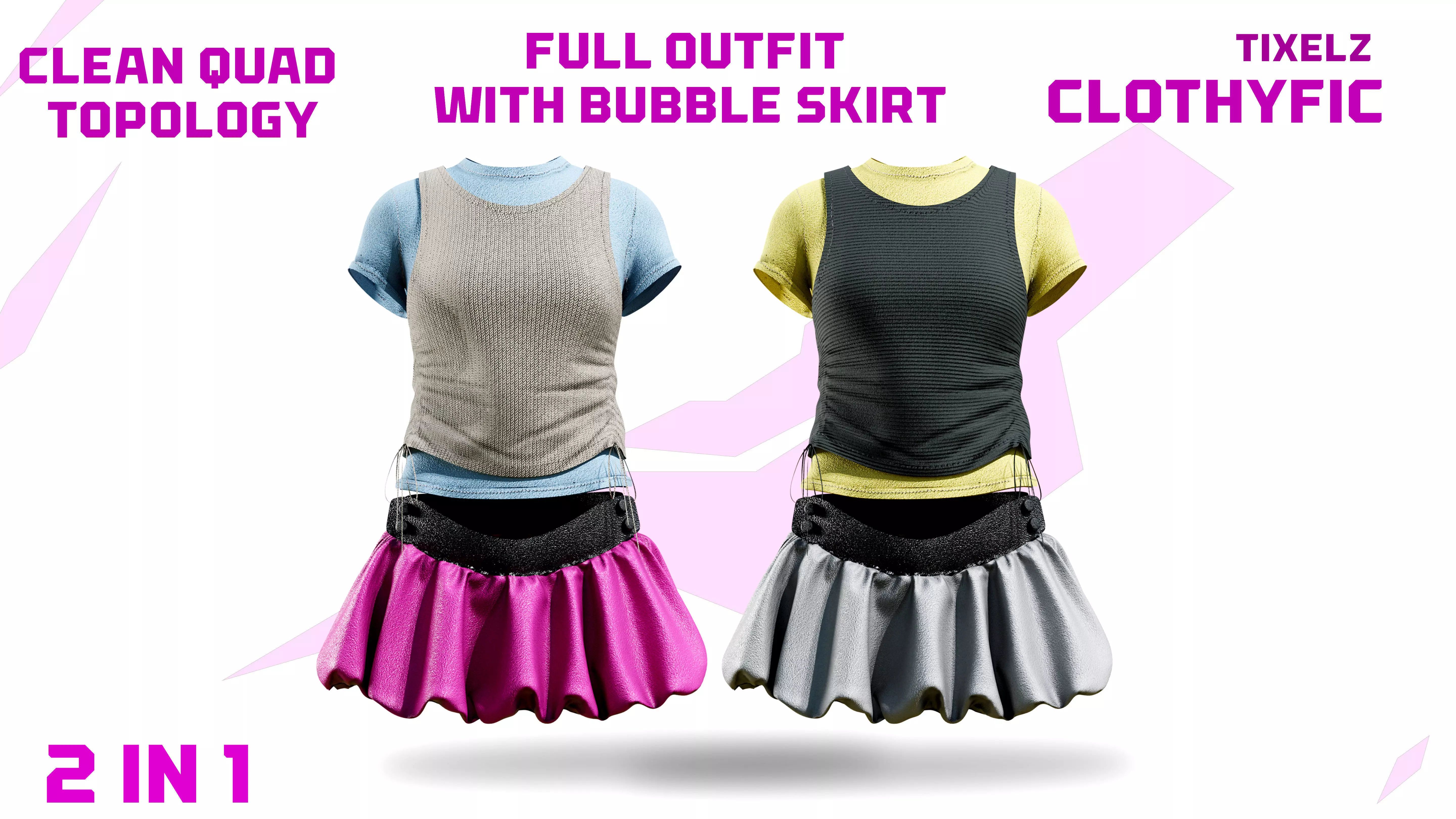 Layered Top with Bubble Skirt 3D Model – 2 in 1 Outfit | Clean Quad Topology