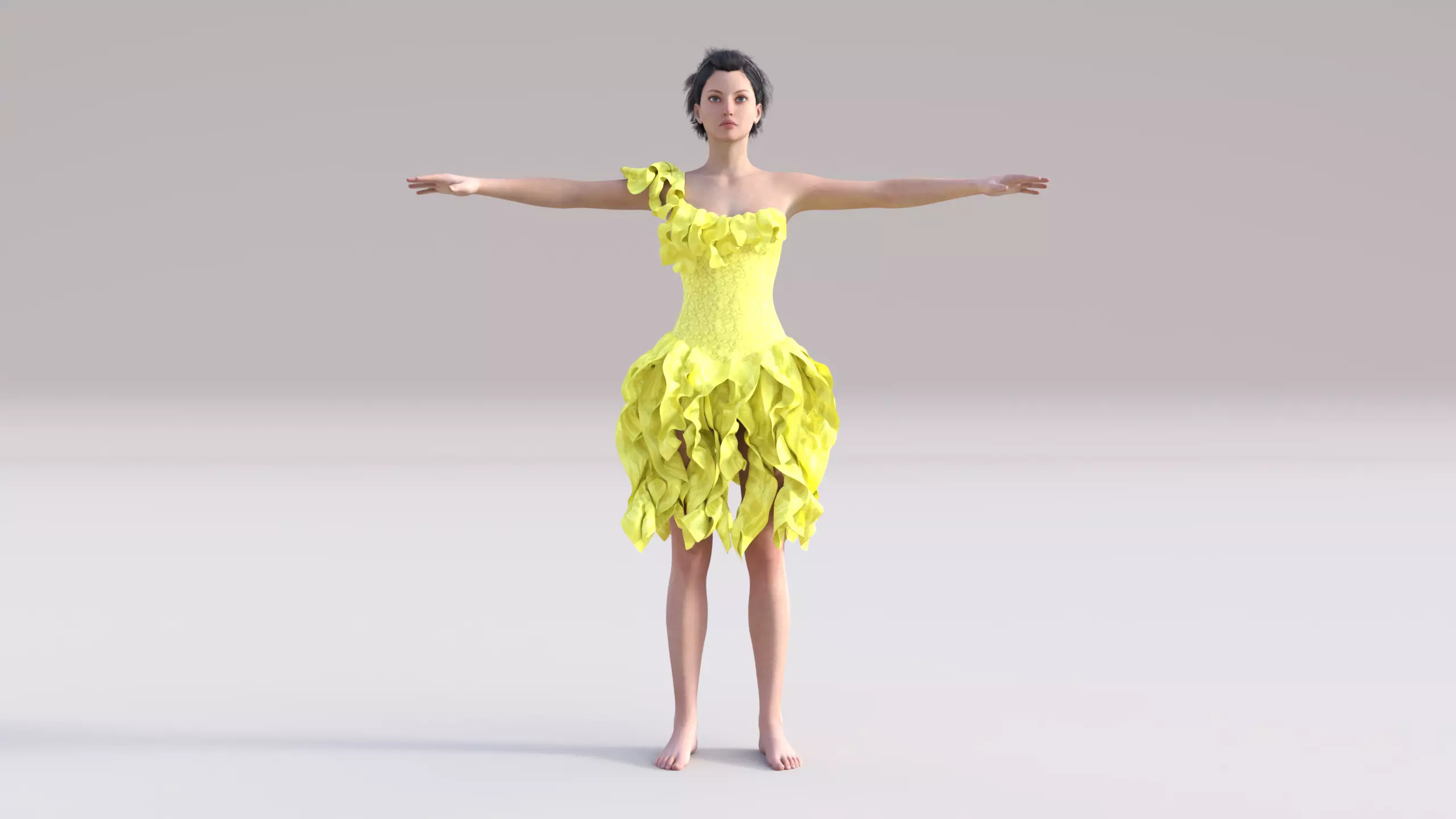 canary Green Dress Party Outfit Clothing Low-poly 3D model
