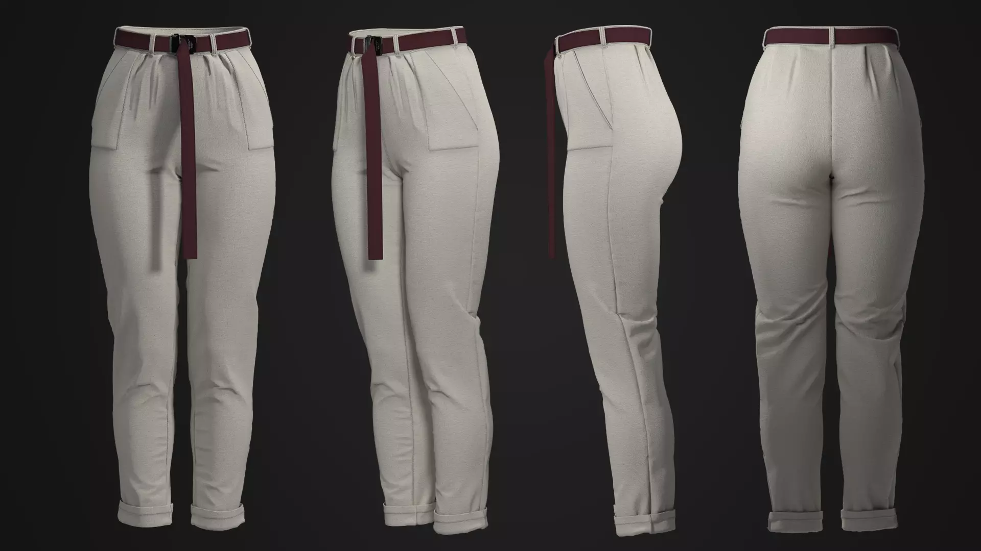 Canvas Pants with Belt Fitted to Gen8 Body Mesh 3D model