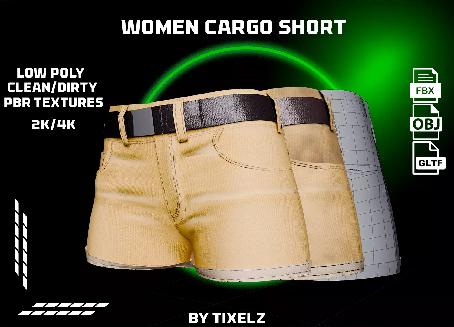 3D Cargo Shorts – Clean & Dirty Textures (FBX – Thick, GLB & OBJ – Thin + 2K & 4K)