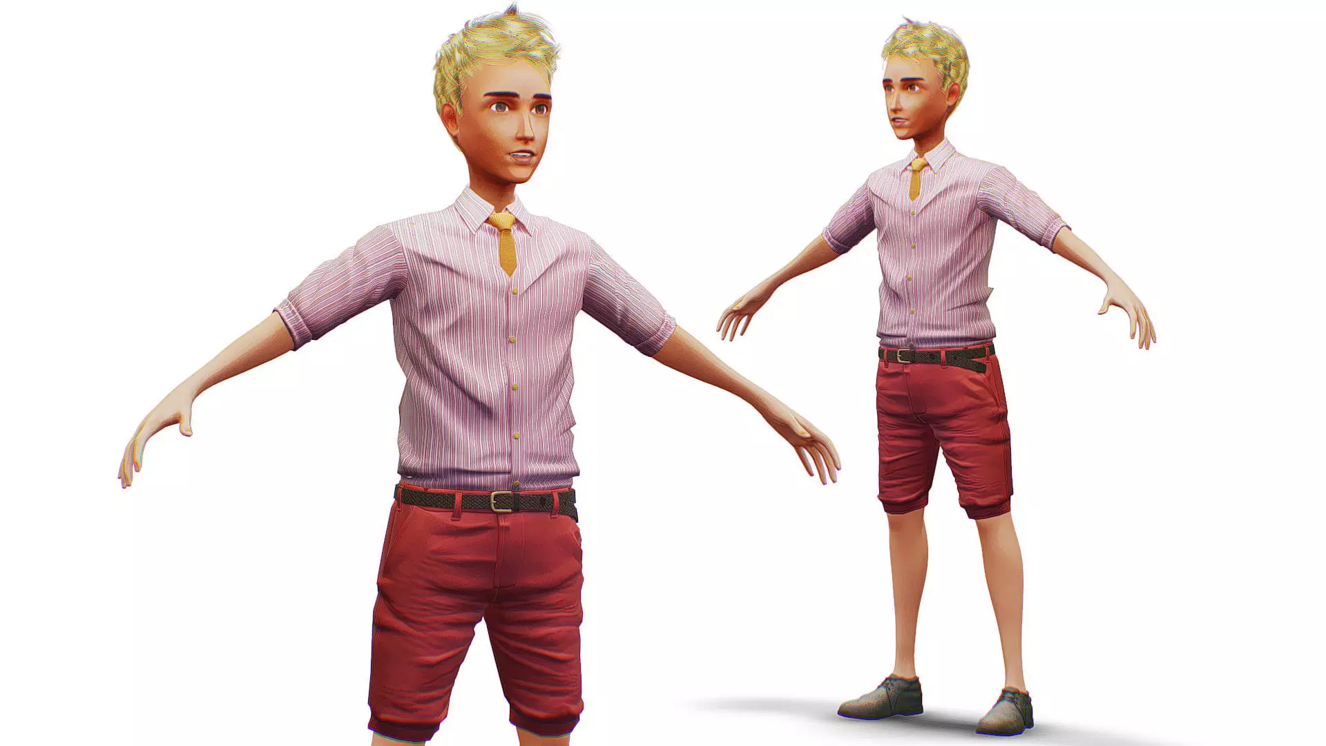 Men Casual Summer Outfit - Pink Bermuda Shorts - Hawaiian Shirt 3D model