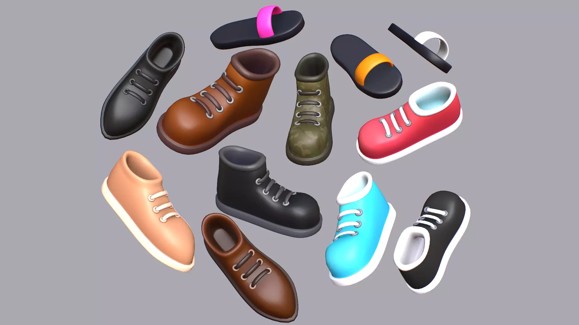 Models Statistics: Boot 9824 Polygon, Shoe 8240 Polygon, Slipper 3864 Polygon, Sneaker 8624 Polygon