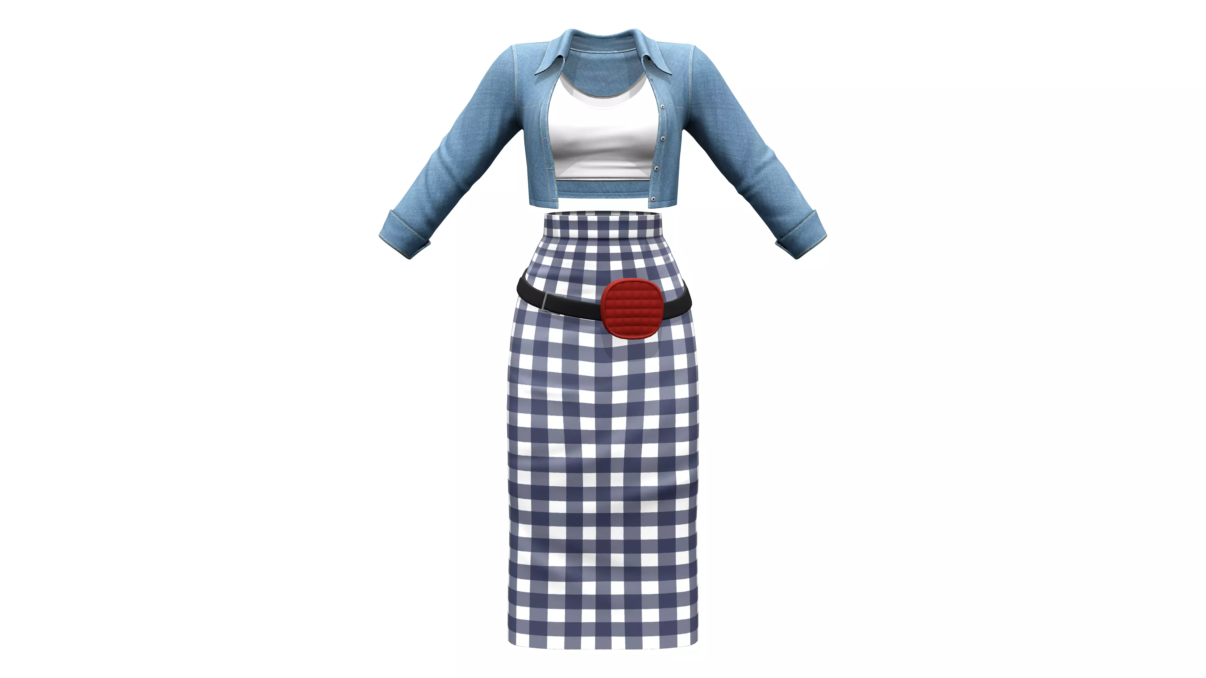 Casual Denim Jacket White Top Skirt Belt Outfit Low-poly 3D model