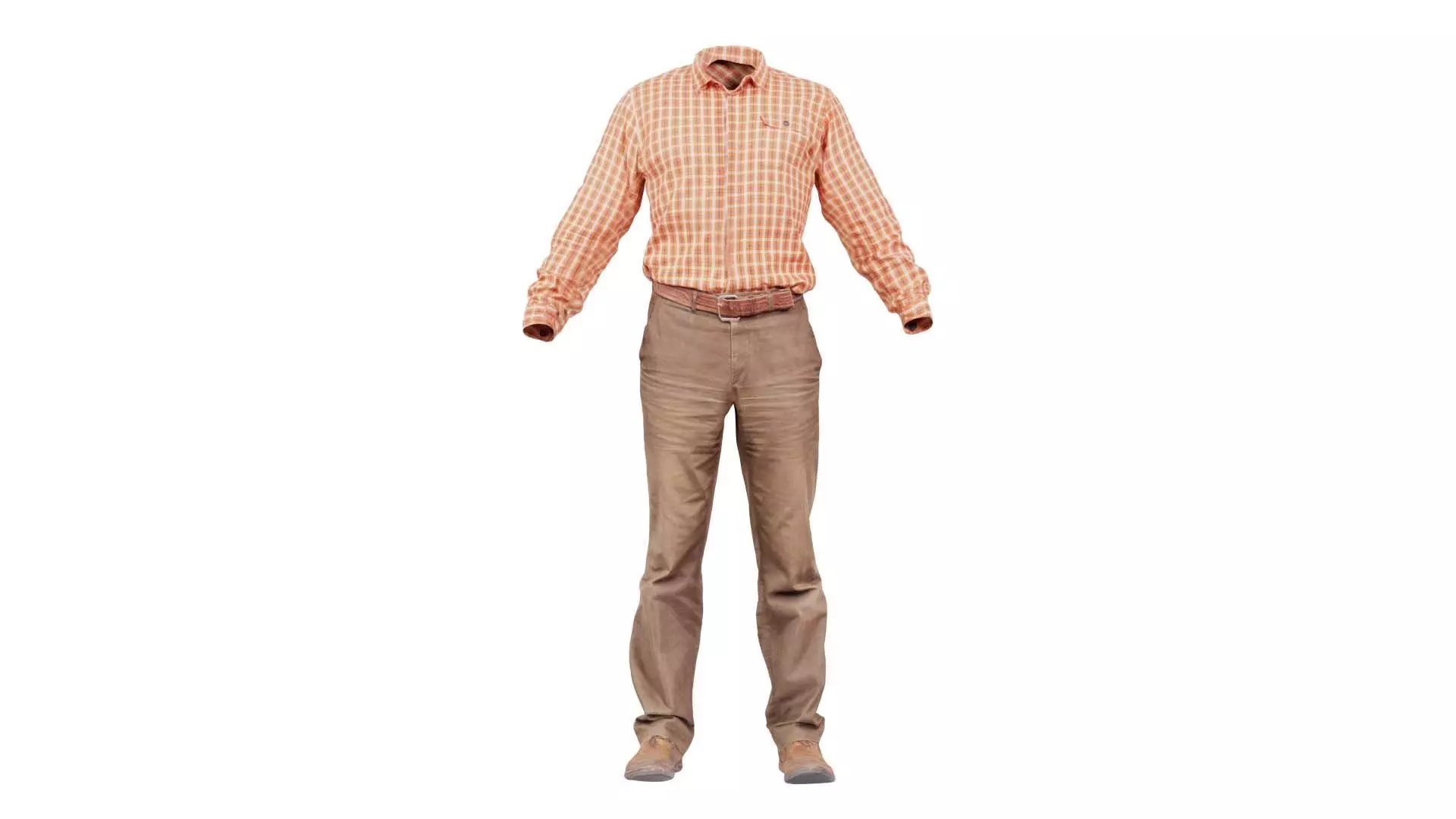 3D scanned model featuring a man in a shirt and pants standing up. This model, casual outfit 35, has been created using photogrammetry from a real world object.The raw scan data has been cleaned, retopologized and UV-unwrapped using Zbrush. The result is a low poly mesh with baked maps. The .obj and .mtl are configured so that maps will load automatically in the shader (tested in Blender). In addition, a Blender scene is provided with the model and shader already set up for rendering and export. Detailed information below: