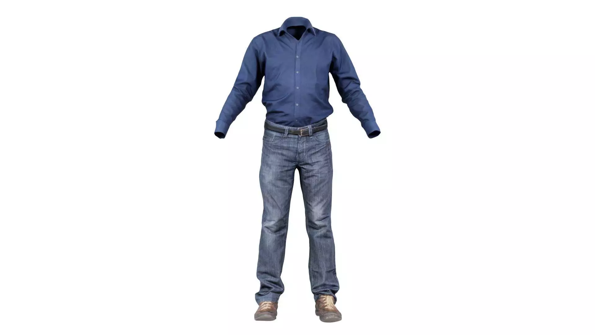 3D scanned model featuring a man in a blue shirt and jeans. This model, casual outfit 67, has been created using photogrammetry from a real world object.The raw scan data has been cleaned, retopologized and UV-unwrapped using Zbrush. The result is a low poly mesh with baked maps. The .obj and .mtl are configured so that maps will load automatically in the shader (tested in Blender). In addition, a Blender scene is provided with the model and shader already set up for rendering and export. Detailed information below: