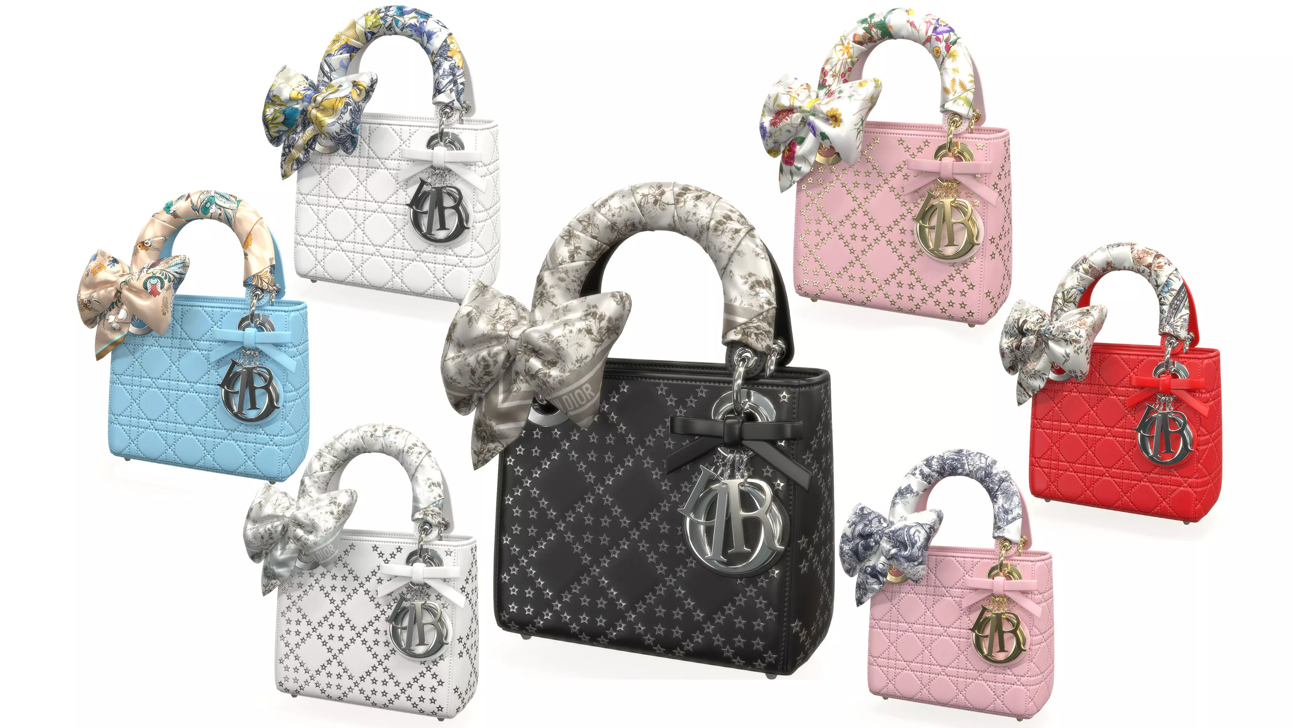 Christian Dior Lady Dior Bag Collection Low-poly 3D model