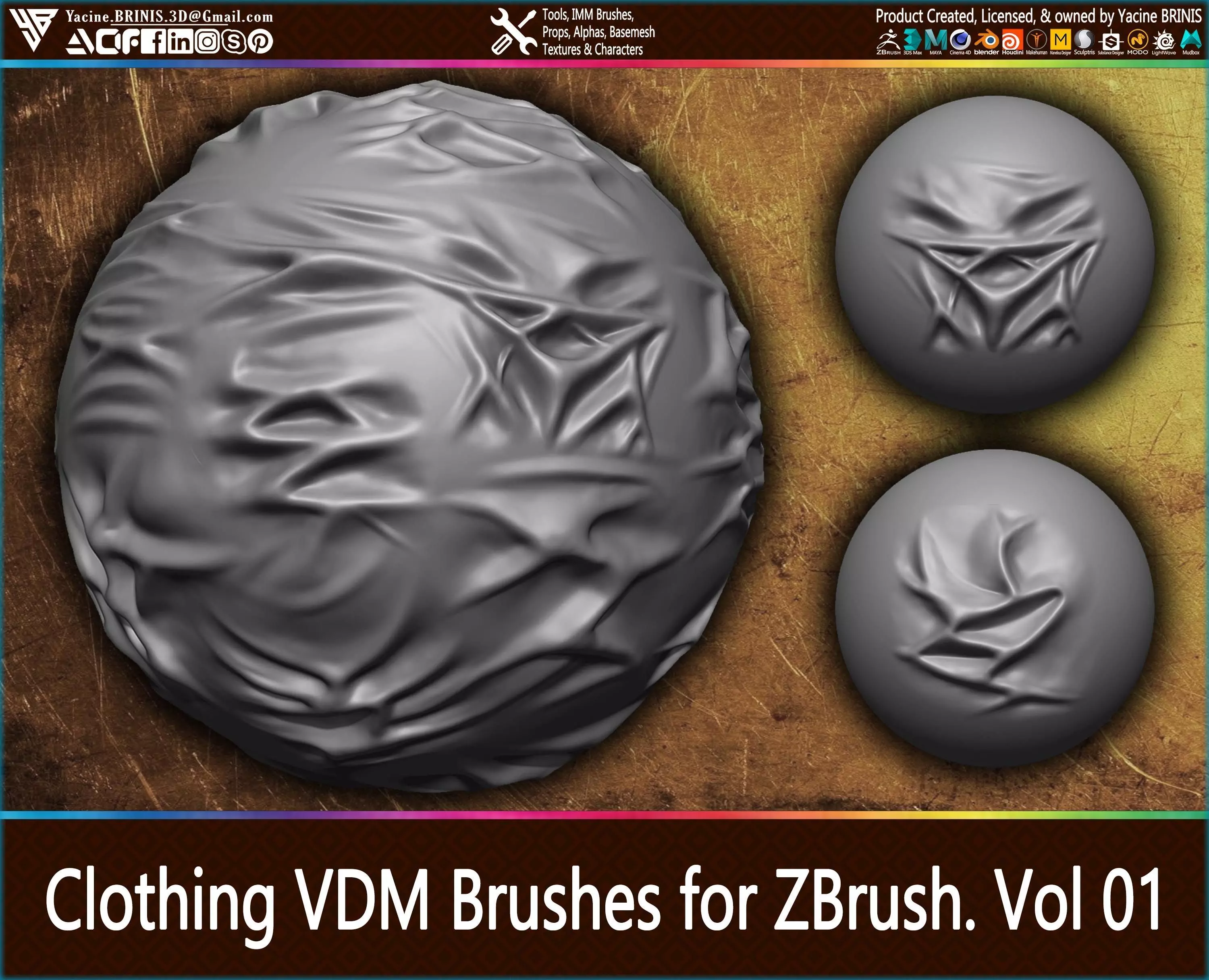 Clothing VDM Brushes for ZBrush. Vol 1 (Creases, Folds, Silks, Wrinkles)