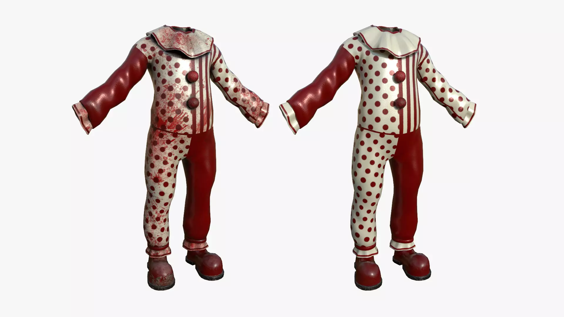 Clown Terror Outfit A - Character DesignTwo versions included: Normal and Bloodycan be used as character costume/outfit/skin/clothing, or even as a decorative item.