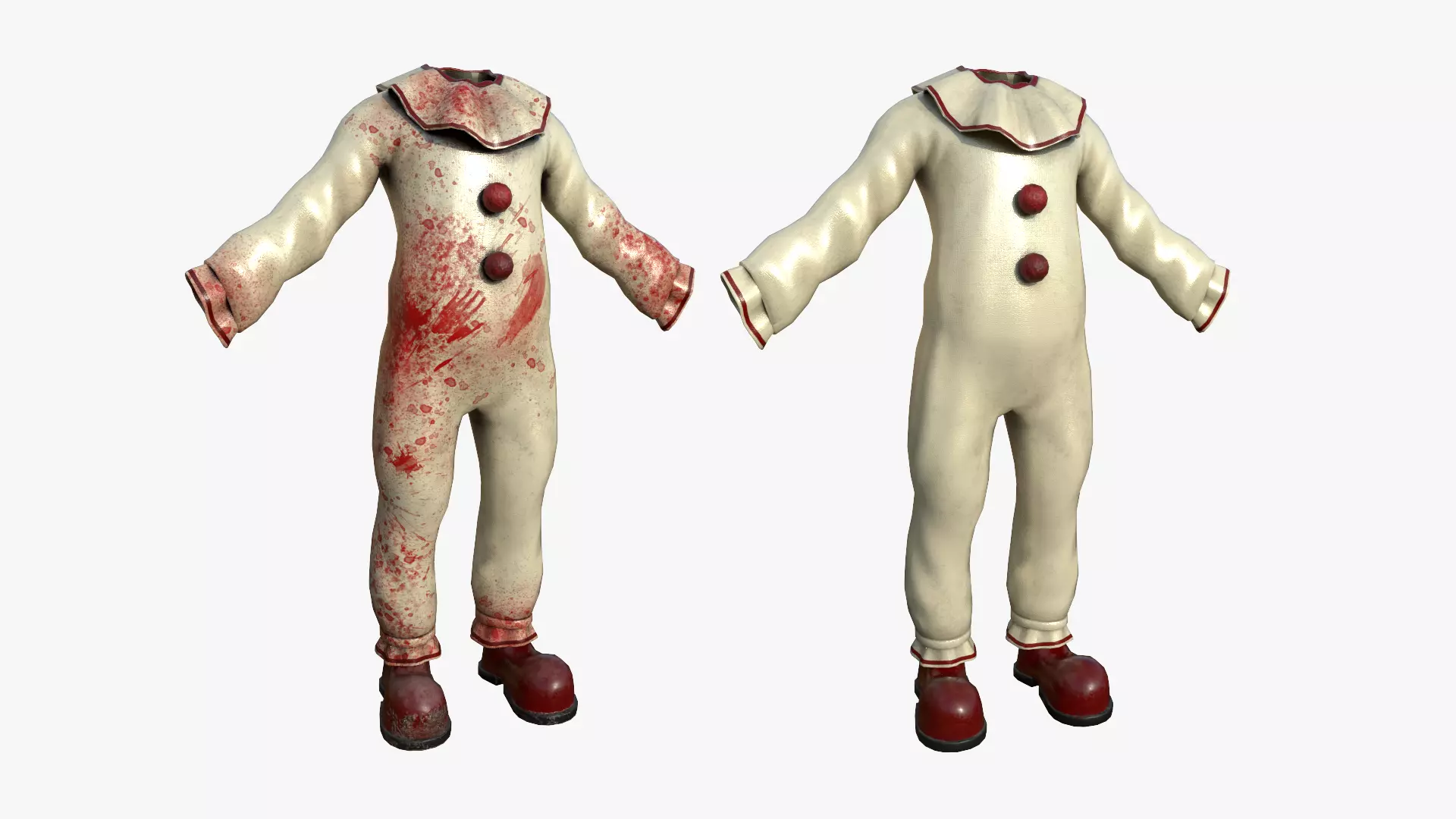 Clown Terror Outfit A - Character DesignTwo versions included: Normal and Bloodycan be used as character costume/outfit/skin/clothing, or even as a decorative item.
