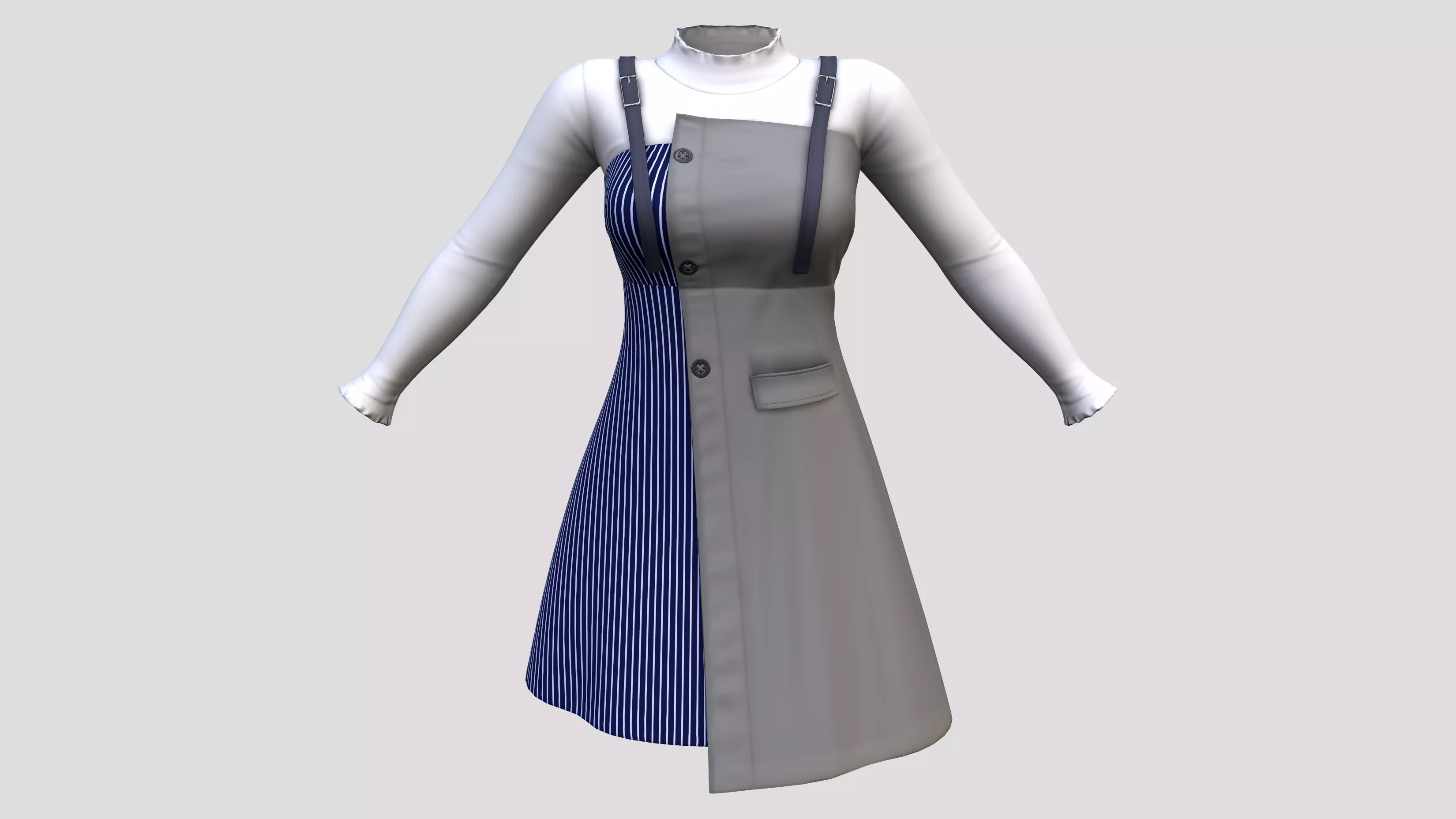 Color Panel Strappy A-line Dress Low-poly 3D model