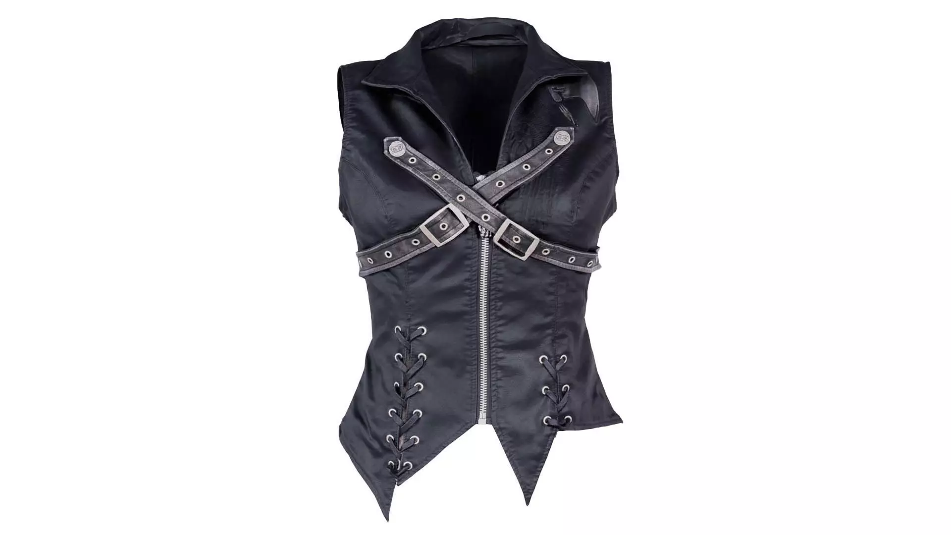 3D scanned model featuring a black vest with metal buckles and a zipper. This model, cross leather vest, has been created using photogrammetry from a real world object.The raw scan data has been cleaned, retopologized and UV-unwrapped using Zbrush. The result is a low poly mesh with baked maps. The .obj and .mtl are configured so that maps will load automatically in the shader (tested in Blender). In addition, a Blender scene is provided with the model and shader already set up for rendering and export. Detailed information below: