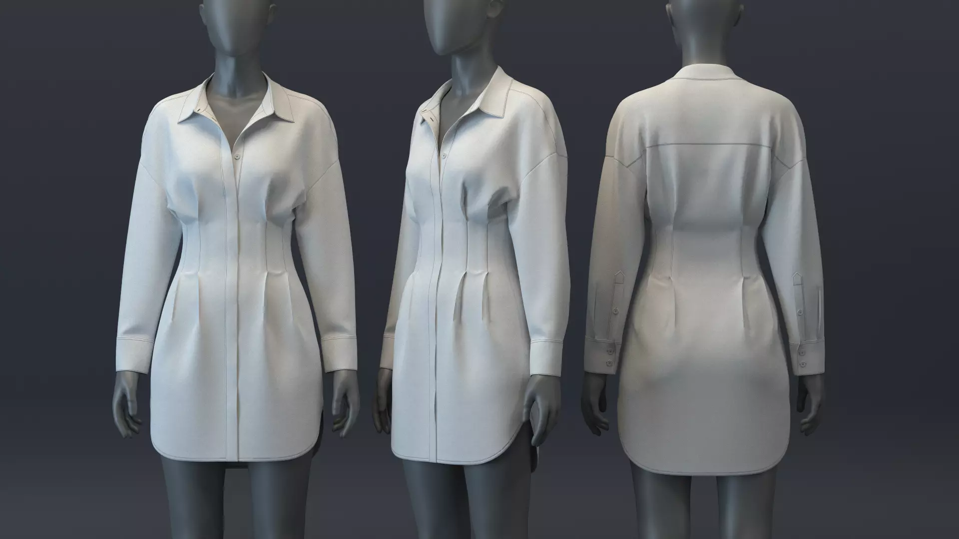 DESIGN DETAILS• Main Fabric: Cotton (VMOD Library)• 2-darted bodice (Front and Back)• Dropped shoulder; Long sleeves with cuffs• Silhouette: Fit & Flare• Length: Mini; Curved hem• Finish: Facing & stitches included for a more realistic look when rendered