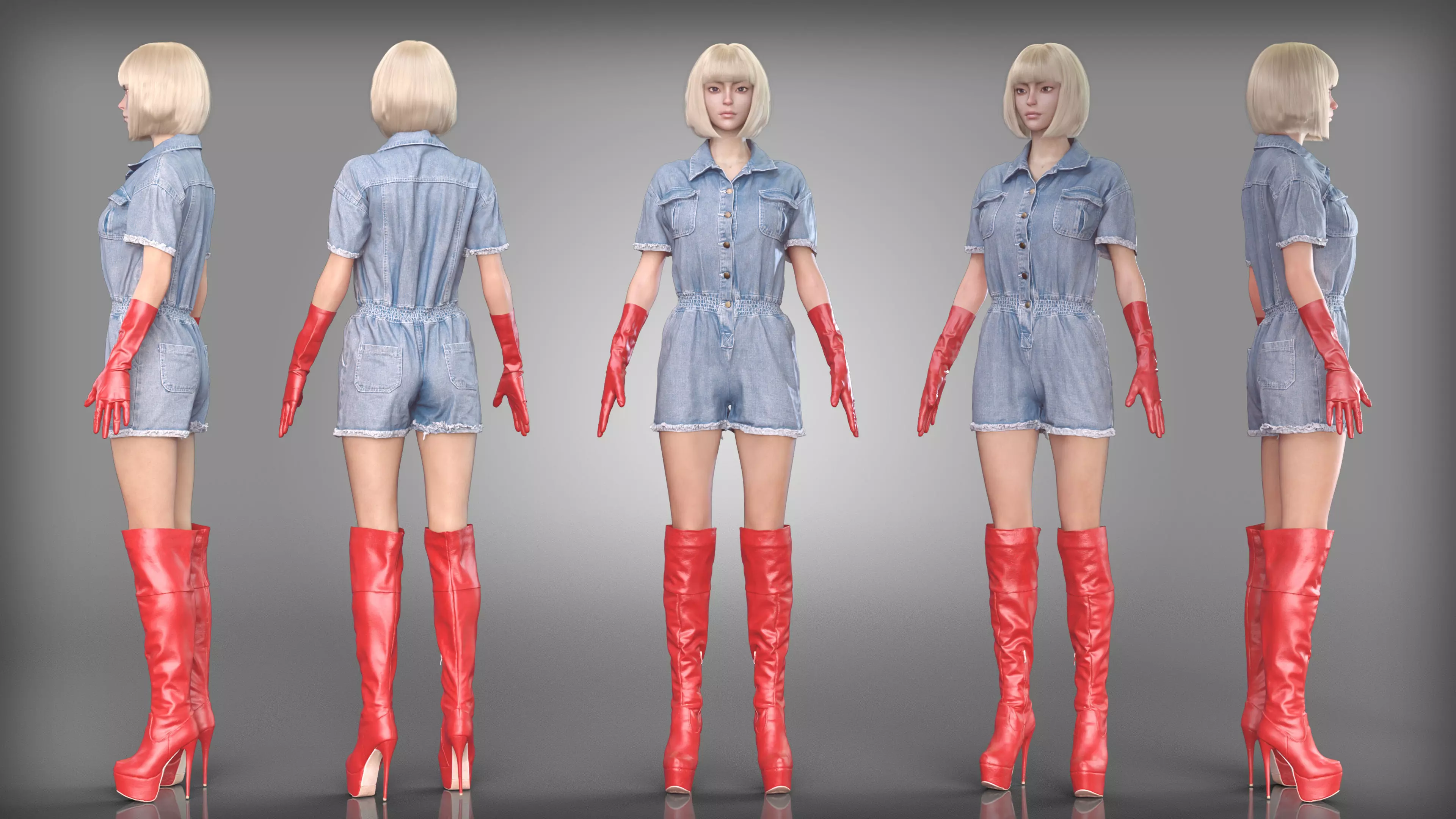Denim Jumpsuit with Red Gloves and Thigh High Boots Low-poly 3D model