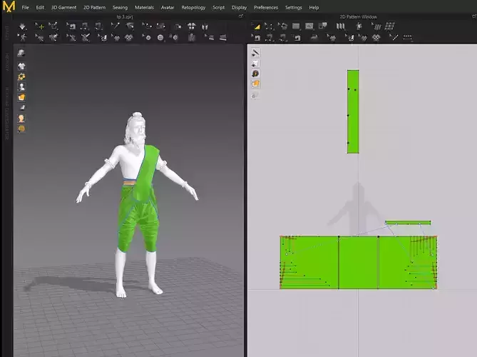 The model has material settings that define how surfaces look (color, shine, transparency, etc.).