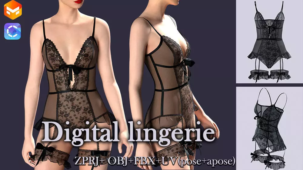 Digital lingerie ( MD/Clo3D .Zprj + OBJ+FBX+UV (pose+apose)