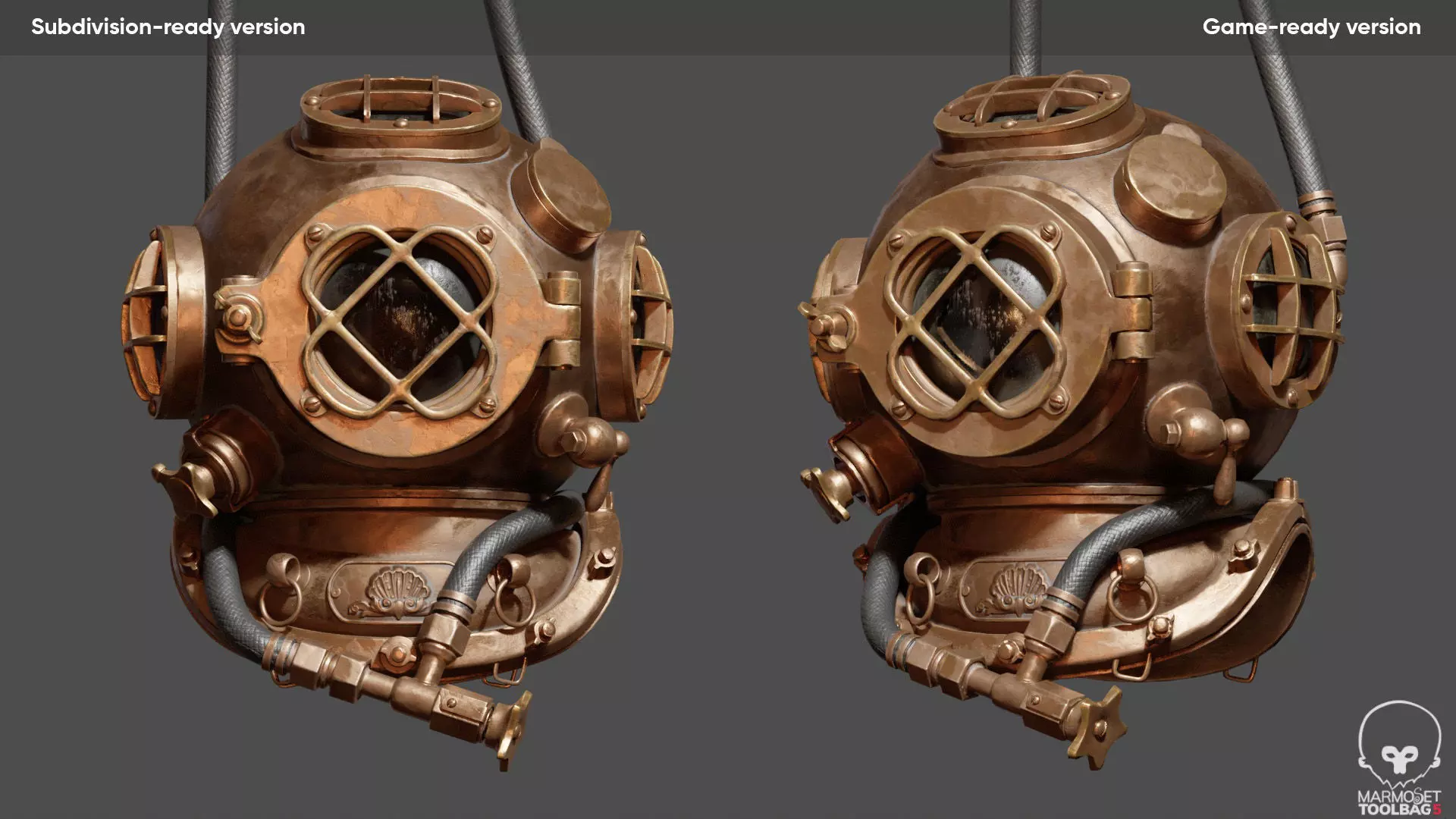 Each model version has its own dedicated texture set. Textures are not interchangeable between the subdivision and the game-ready versions.