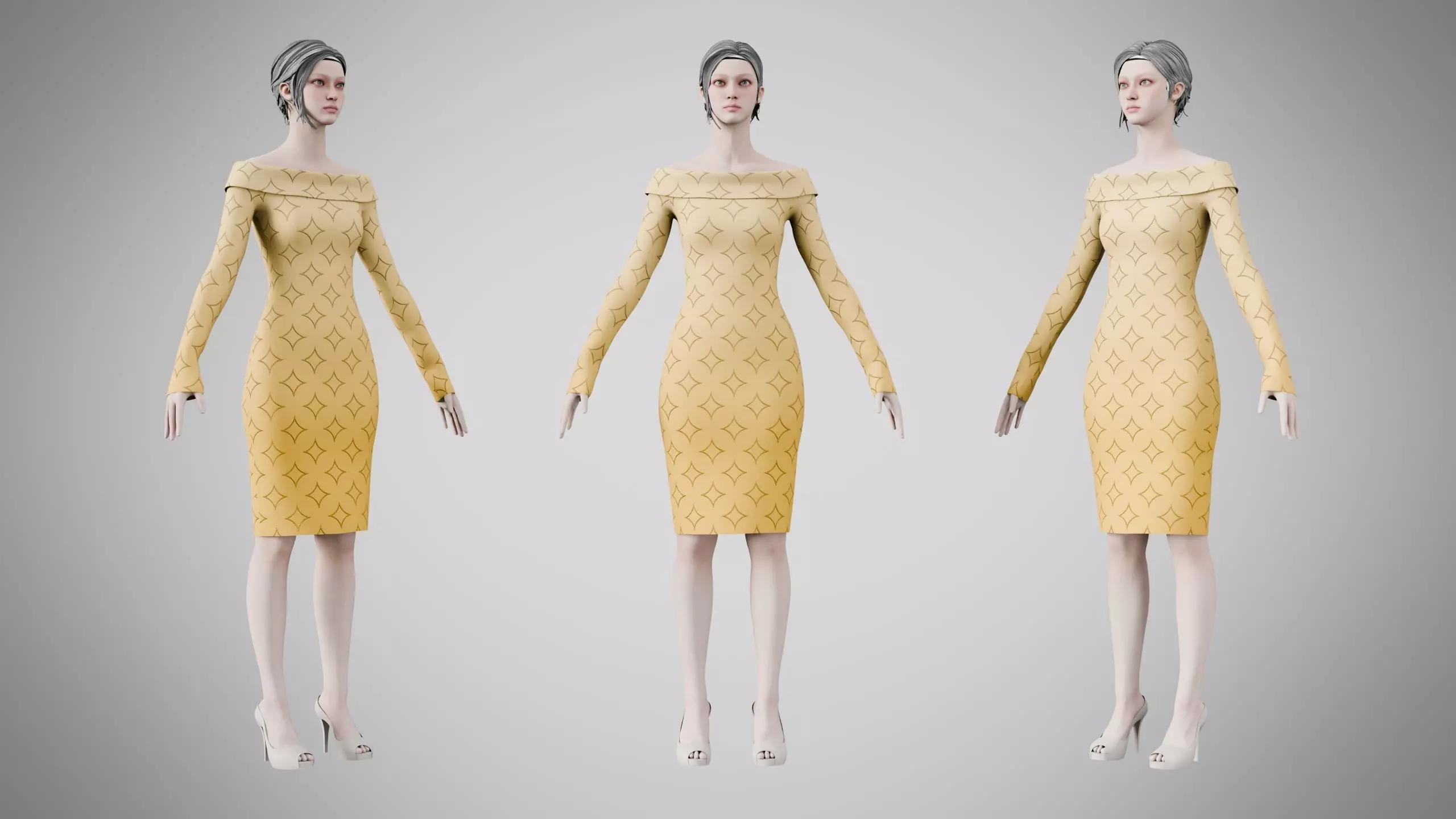 This Dress is high quality model with highly detailed textures and less on poly counts. It is suitable for use in the gaming industry and various production environments.The Dress is made in Marvelous Designer, textured in Substance Painter and Rendered in Blender's Cycle.