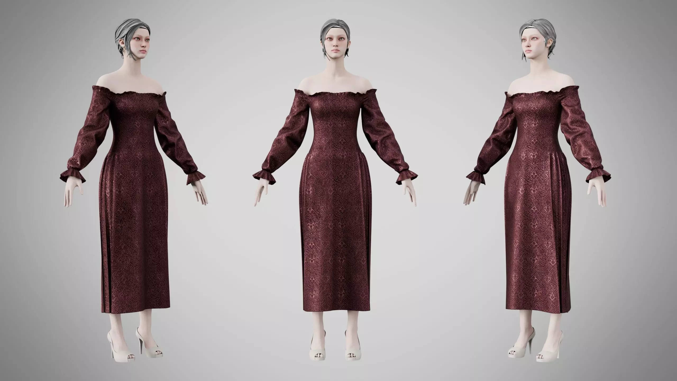 This Dress is high quality model with highly detailed textures and less on poly counts. It is suitable for use in the gaming industry and various production environments.The Dress is made in Marvelous Designer, textured in Substance Painter and Rendered in Blender's Cycle.