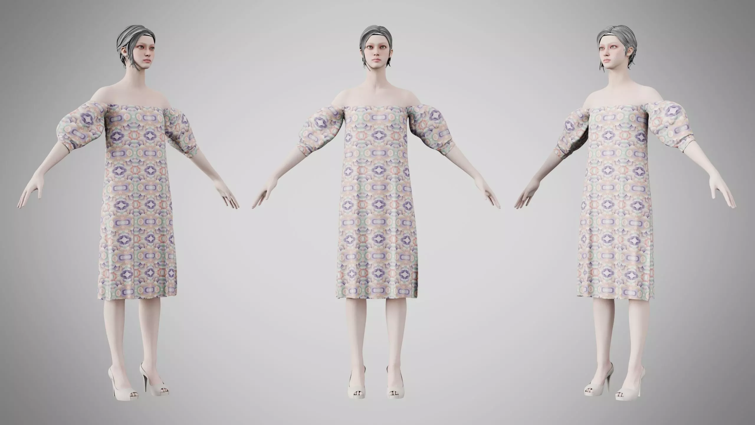 Disclaimer: The Avatar in the images is imported from Marvelous Designer to just show that how Dress looks on a human body. This Avatar is not included with Dress.