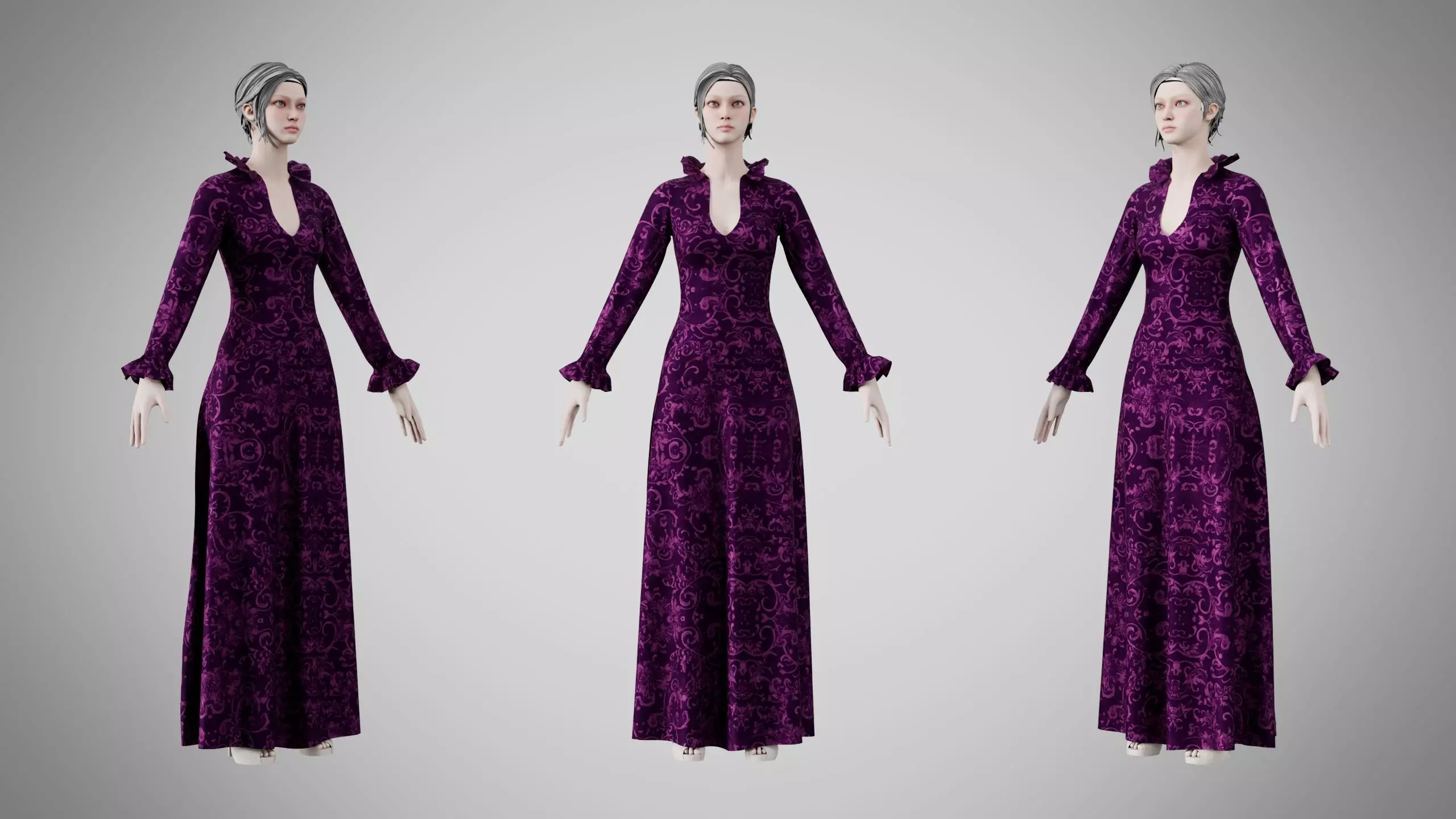 This Dress is high quality model with highly detailed textures and less on poly counts. It is suitable for use in the gaming industry and various production environments.The Dress is made in Marvelous Designer, textured in Substance Painter and Rendered in Blender's Cycle.