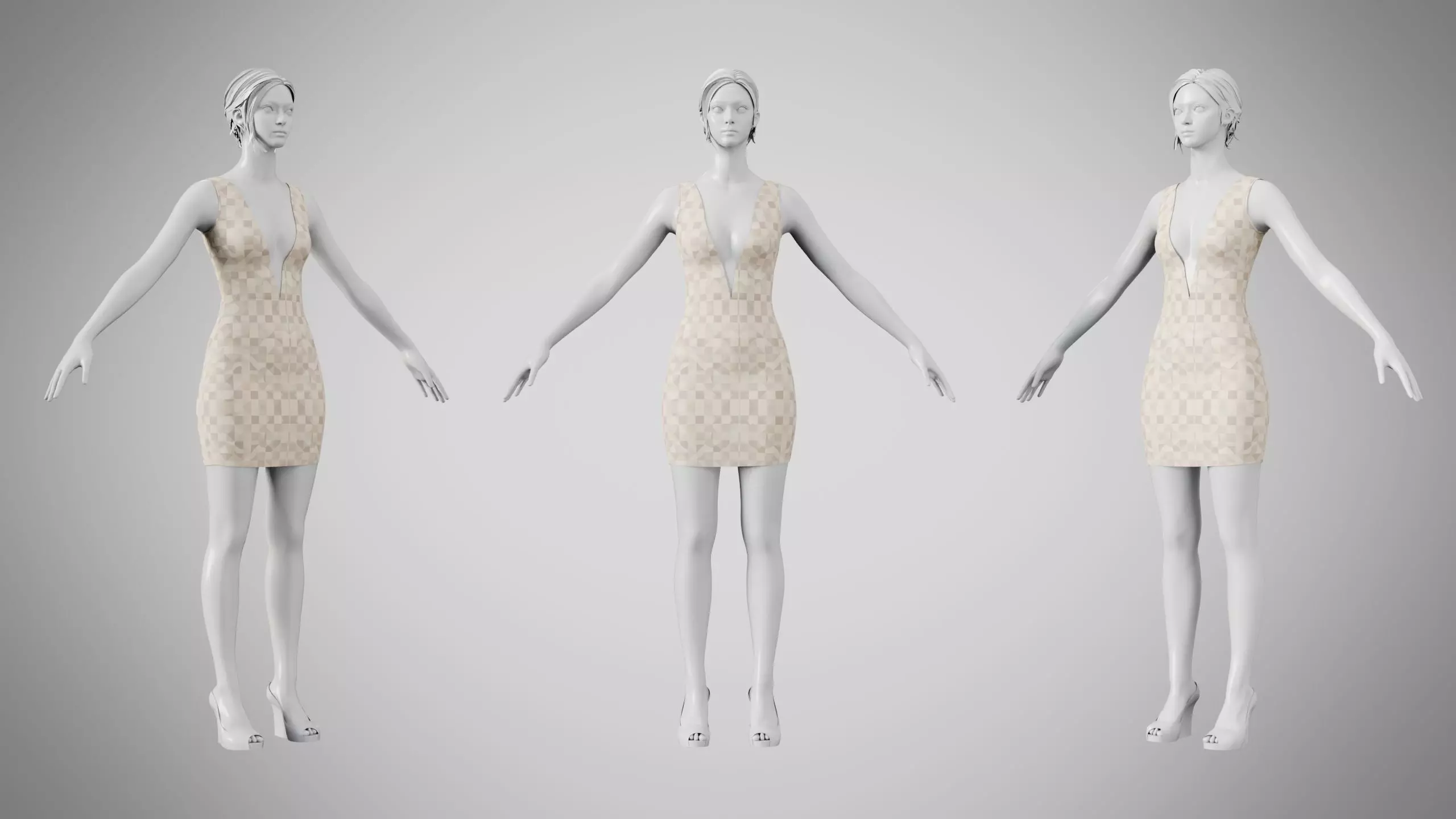 Dress 34 Checker Tone Low-poly 3D model