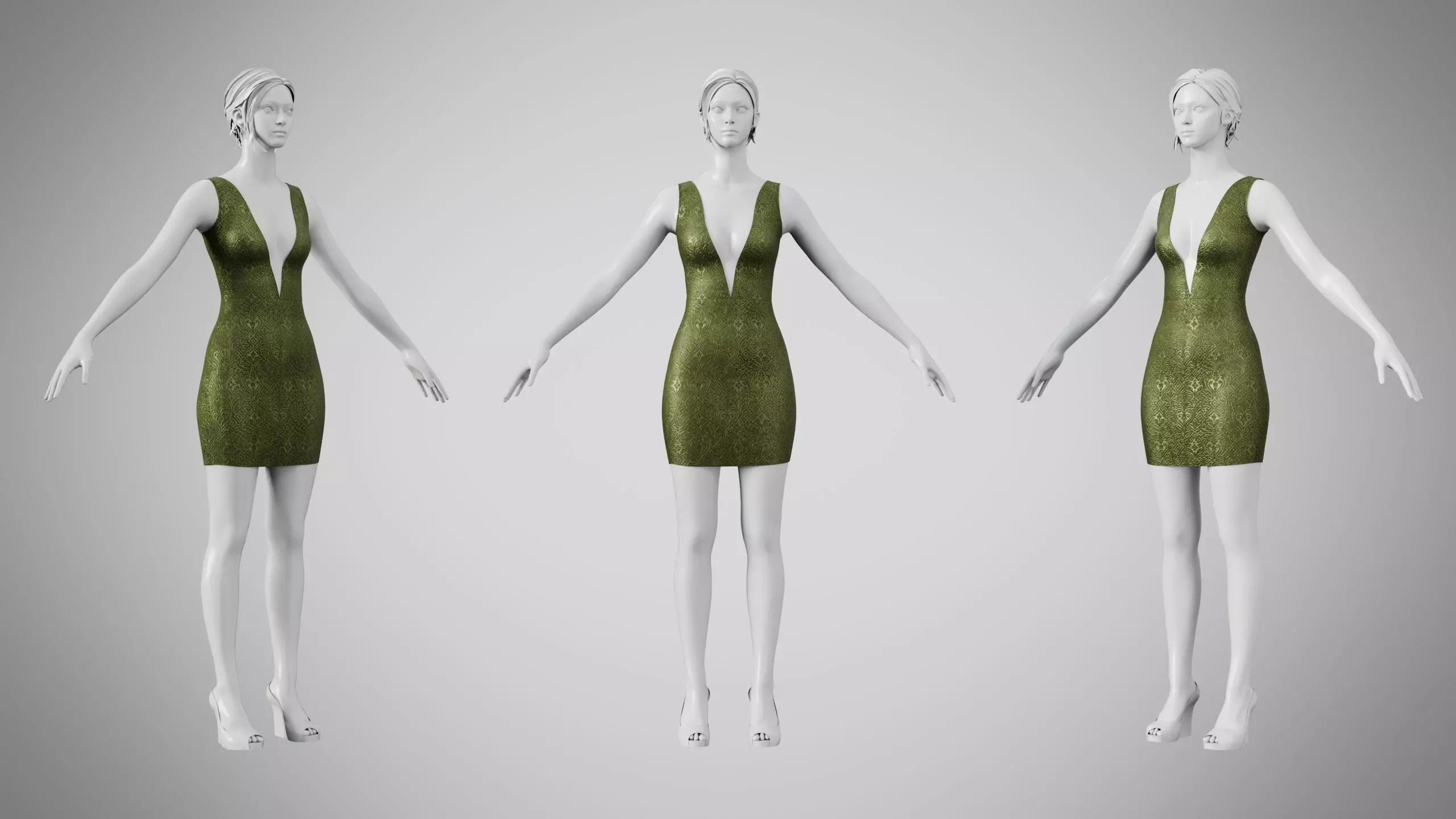Dress 34 Olive Green Velvet With Design Low-poly 3D model