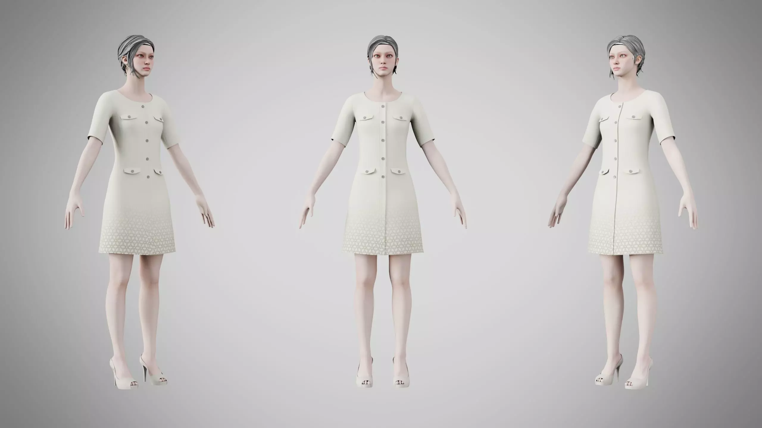 This Dress is high quality model with highly detailed textures and less on poly counts. It is suitable for use in the gaming industry and various production environments.The Dress is made in Marvelous Designer, textured in Substance Painter and Rendered in Blender's Cycle.