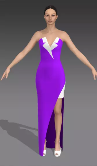 Dress heart shaped collar neckline detail white color and slit skirt asymetric skirt and mini skirt white detail matte purple dress modern chic look