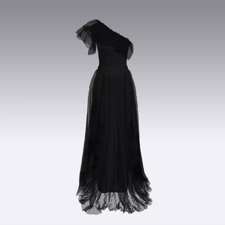 Dress one shoulder ruffled slevee Low-poly 3D model