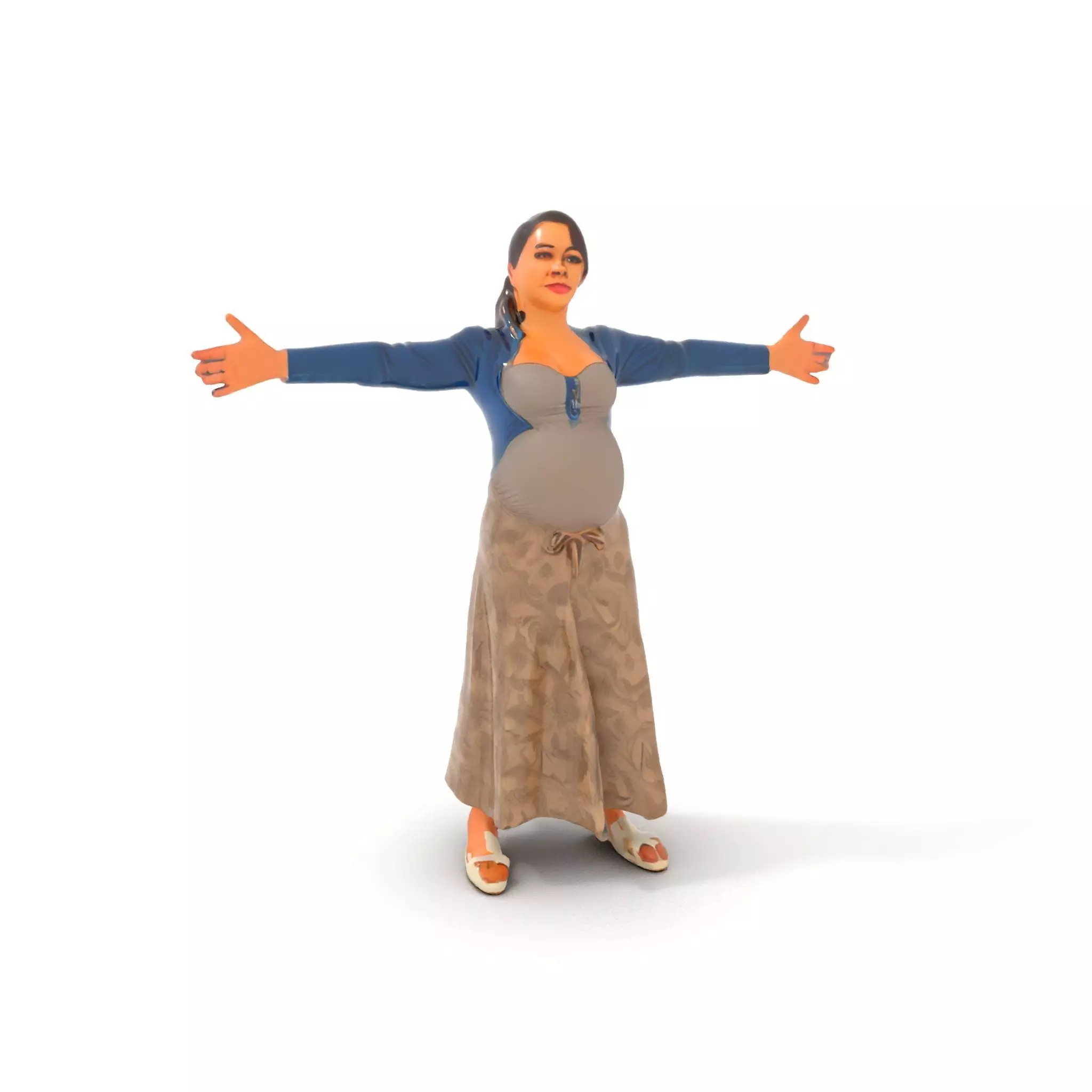 This 3D model showcases an elegant maternity outfit, designed for versatility in virtual fashion projects. The ensemble consists of a comfortable, stylish skirt with a subtle pattern and a complementary top.