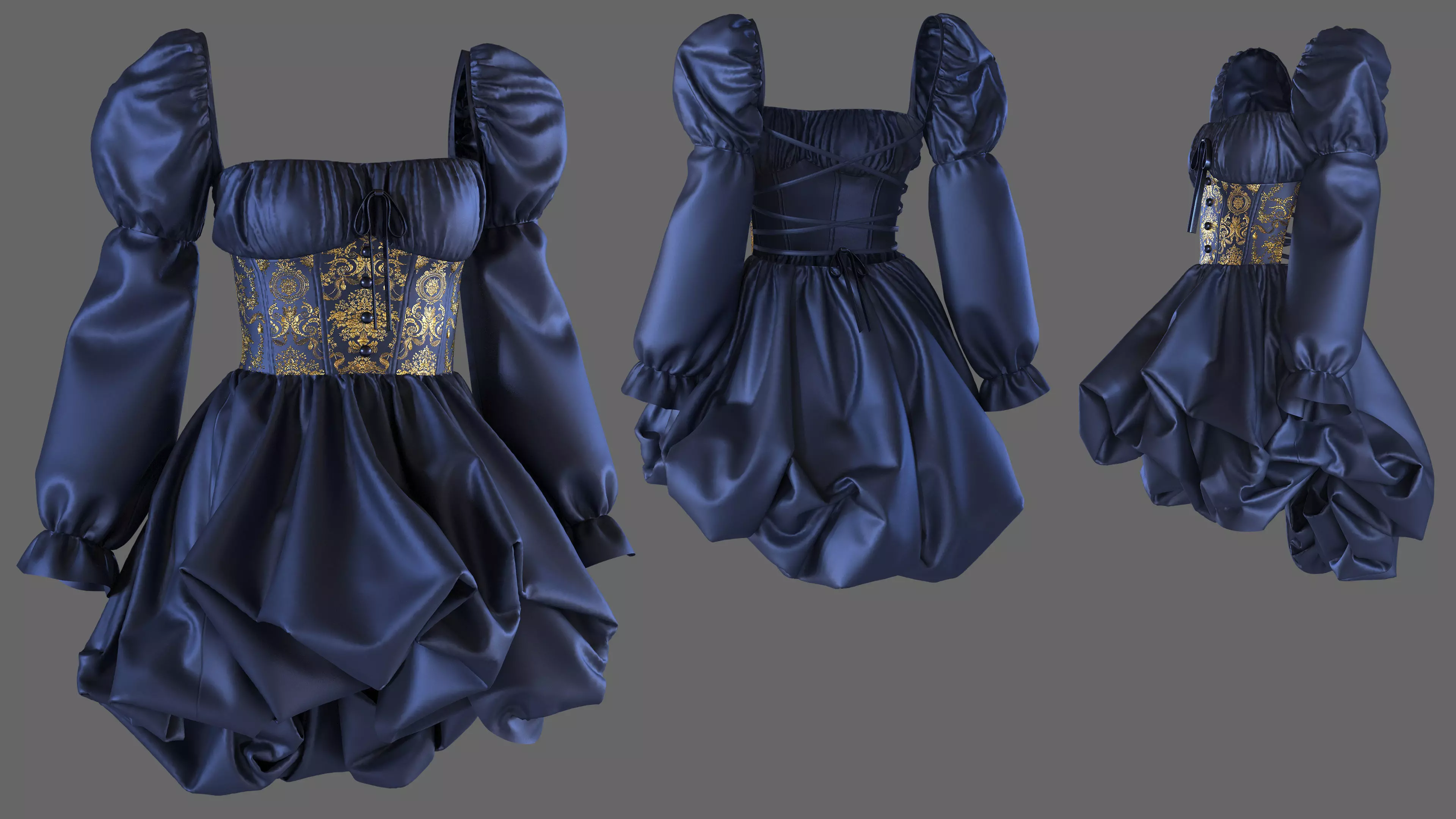 This model is an excellent choice for professionals in digital fashion, 3D design, animation, and game development. Whether you’re creating virtual clothing collections or integrating realistic fashion into your projects, this Elegant Ruffle Corset Dress will elevate your design.